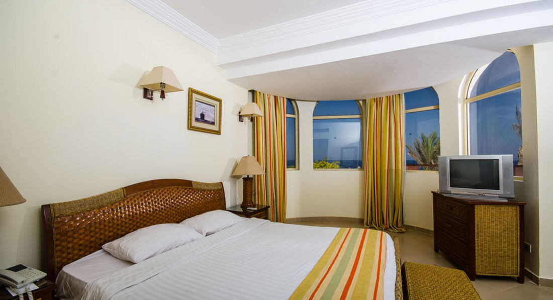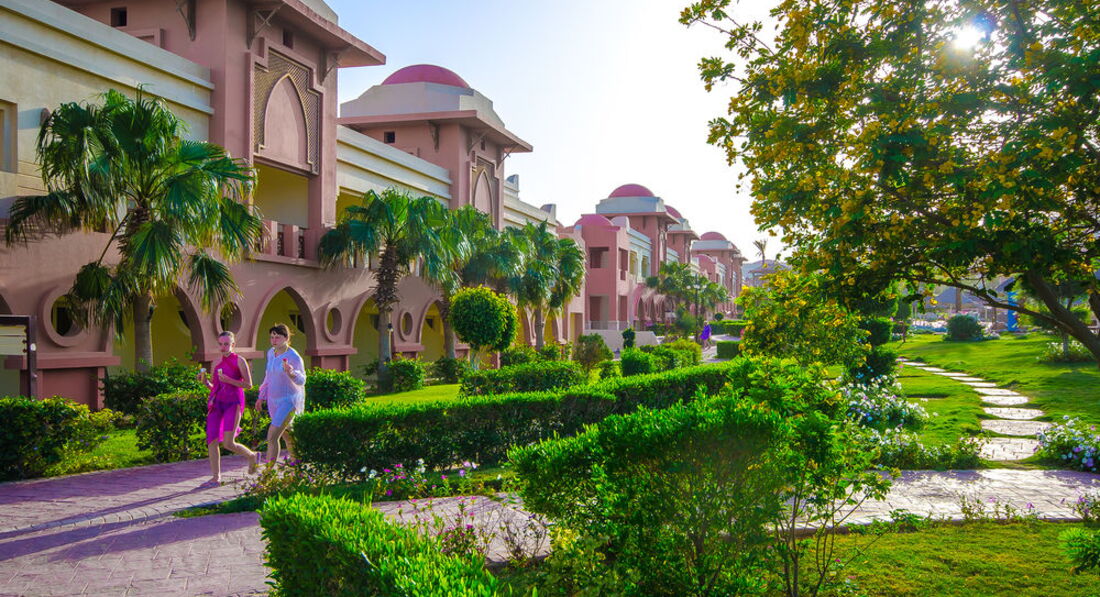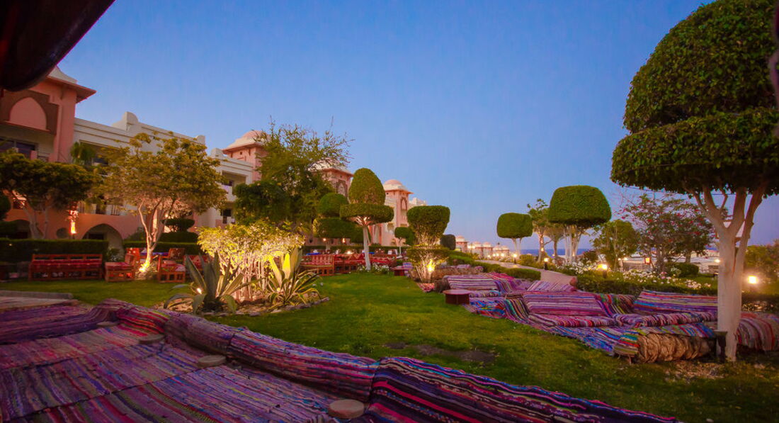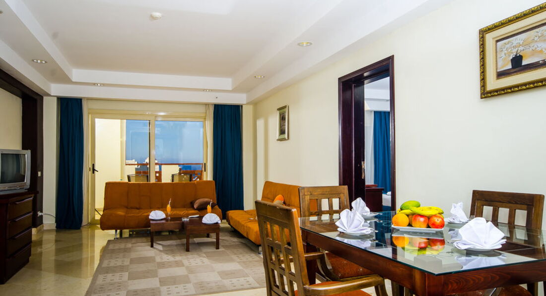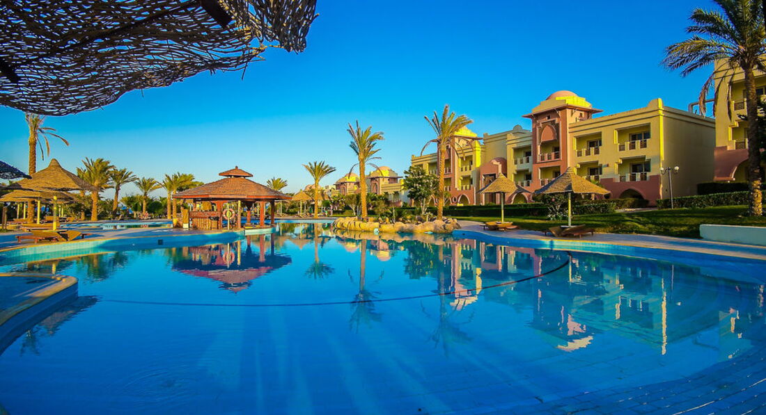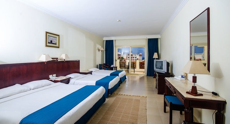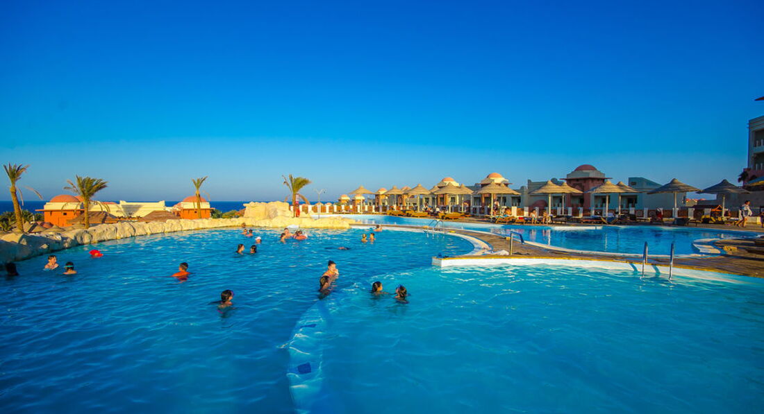 Отдыхали в данном отеле в период с 13.06 - 28.06.2011г с мужем и ребенком 2г9мес. Начитались массу негативных отзывов и сразу же решили брать систему ультра всё включено и номер люкс с видом на море! Приехали в отель часа в 2 дня и нас сразу же заселили, номер просторный, вид с балкона шикарный, кондиционер, холодильник, чайник, фен - всё исправно работало. Была ванна, а не душевая кабина. Музыку от анимации нам вообще не было слышно. Но были и свои минусы: постоянно через всю территорию из номера ходить на завтрак, обед и ужин в ресторан - надоедало, но зато до моря очень близко))) потом начали обед проводить в ресторане на пляже - красивый вид на море, свежий воздух! Были и свои минусы: первую неделю дули сильные ветра, иногда и песчаные бури. Без специальной обуви в море не зайти, мы купили заранее кроссовки для плавания - там при отеле в магазине они тоже есть, но гораздо дороже. Не понравилась еще цена за такси до хургады - 30 дол, мы чуток опоздали к назначенному времени с нас ещё 5 дол взяли... Есть конечно и автобусы за 8 дол с чел туда и обратно, но они туда отвозят на час, на два максимум. а мы брали такси на пол дня ито нам мало времени показалось ходить по магазинам. В отеле кормили хорошо и мясо и рыба и курица - всё было в больших количествах - голодными никто не оставался)) масса гарниров - рис, картошка, макароны, паста, пицца. каждый день повара старались сотворить что-нибудь разннобразное! алкоголь, честоно говоря, - не очень. мы не увлекались)) брала кучу таблеток и для себя и для ребенка - ничего не пригодилось - это радует! на солнце не обгорели, отдыхали то у бассейна с морской водой, то с пресной, то на пляже. обслуживающий персонал приветлив, всё понимают на русском. территория отеля большая, есть мини-клуб для детей, но с 4 лет. в принципе всё понравилось, ехали отдыхать - вот и отдохнули)))))))