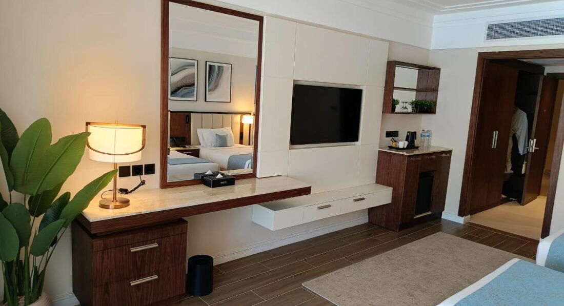 Serenity Sky Arc Resort 5* відкрився у 2025 році на узбережжі бухти Сахль-Хашиш, за 21 км від міжнародного аеропорту Хургади, Єгипет. Готель розташований безпосередньо на власному золотистому пляжі Червоного моря та налічує 380 номерів і сьютів: Стандарт (≈30 м²), Делюкс (≈35 м²), Swim-Up (≈35 м²), Сімейні (≈45 м²) та Сьюїти (≈45 м²). На території: 2 відкриті басейни (один підігрівний у зимовий сезон, один дитячий) та swim-up басейни; SPA-центр «Serenity Spa» (масаж, фейс-процедури, хаммам, сауна, паровий кабінет, джакузі, салон краси); тренажерний зал; падл-тенісний корт; дайв-центр PADI; дитячий клуб; анімаційна програма; безкоштовний Wi-Fi на всій території. Концепція все включено.