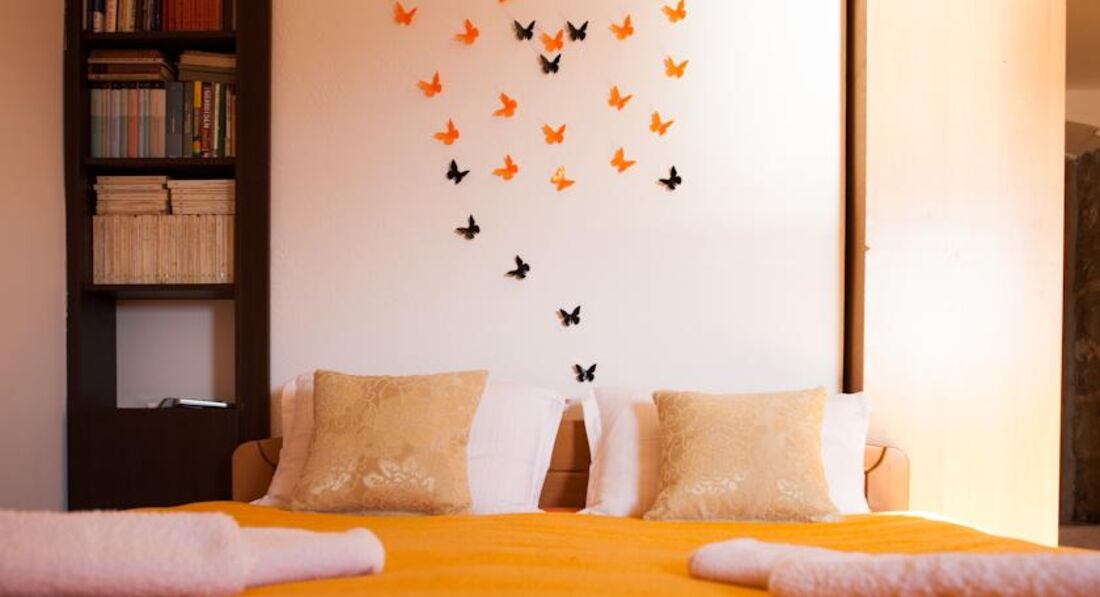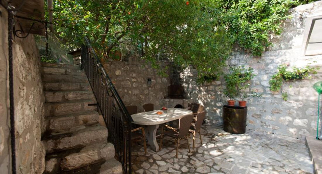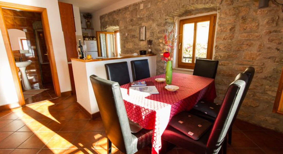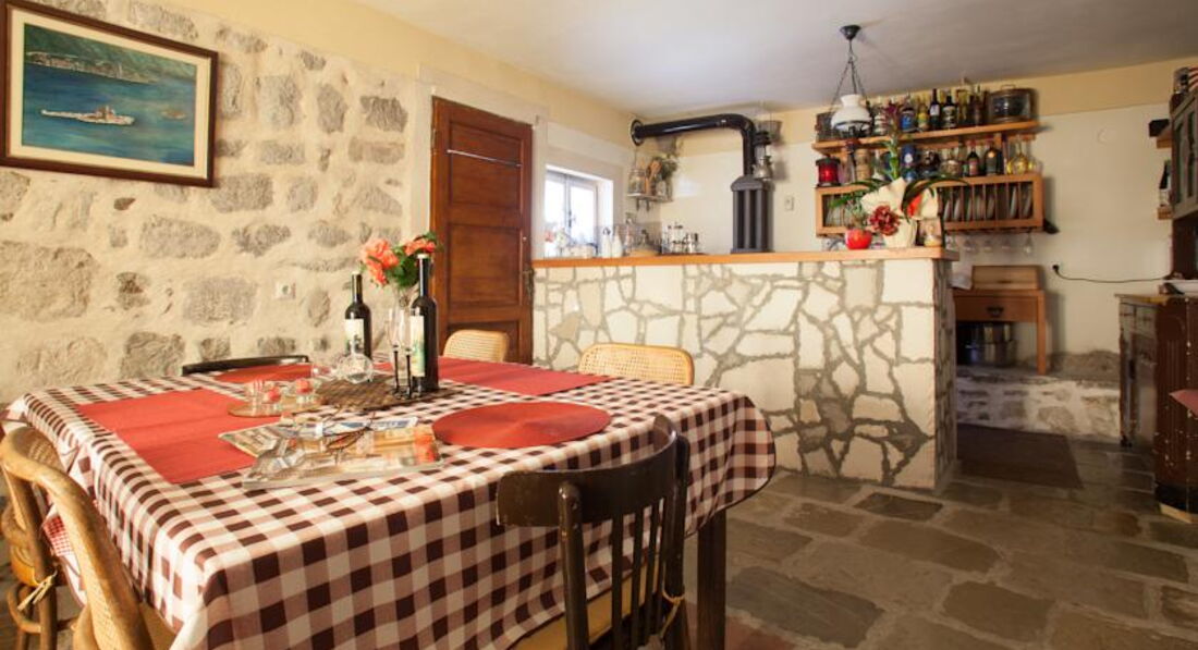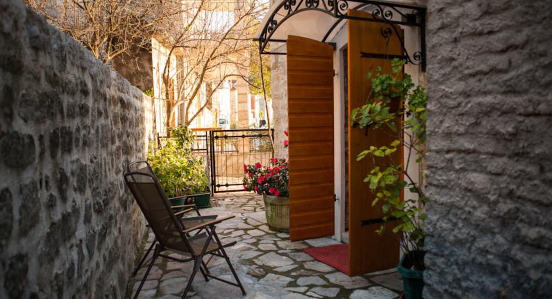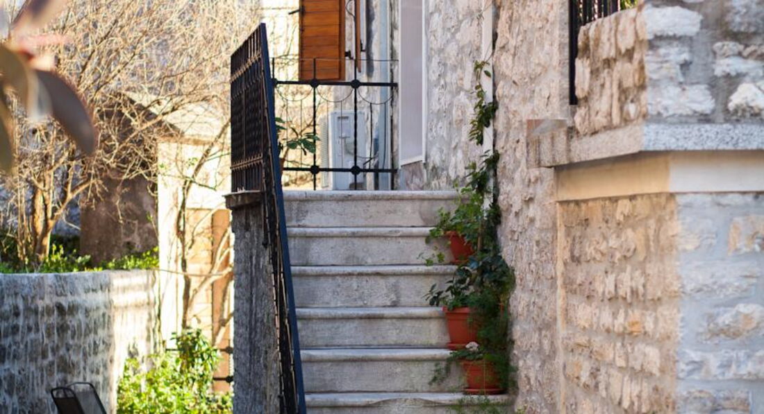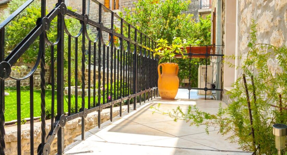 Будівля кам'яної кладки, оточена зеленню, тераса з видом на затоку. Для кожного номера є своя ділянка в саду. Для розміщення пропонуються сучасно обставлені апартаменти – люкс, з них 2 апартаменти – дюплекс.