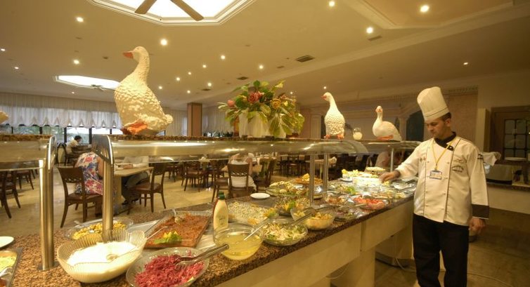 Бари та ресторани: головний ресторан розрахований на 150 осіб (критий, з кондиціонером, дитячі стільці), лобі-бар (24 години), бар біля басейну (10:00-23:00) та ін. 4 ресторани A la Carte: китайська , італійська, турецька, міжнародна - платно, за попередньою резервацією.