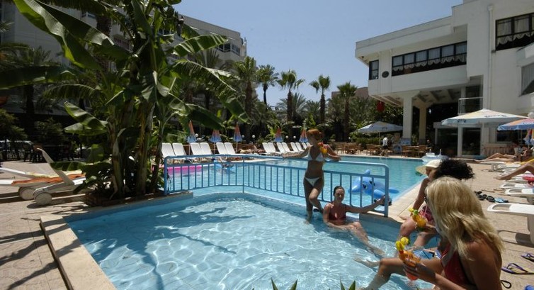 Ездили в этот отель с компанией друзей. Почему именно сюда- потому что на момент бронирования больше нечего было выбрать под наш бюджет. Из плюсов отмечу прекрасных людей, с которыми мы здесь познакомились. Но это вряд ли заслуга отеля. Пожалуй, из плюсов это всё. Из минусов: отвратительное отношение персонала, платная вода (для Мармариса это нормально), но здесь даже если в обед ты берешь два стакана воды, то тебя обязательно остановит официант. Еда отвратительная: каждый день одни и те же обкромсанные кусочки овощей под кучей майонеза....самое съедобное - вареные яйца. Море рядом с отелем грязное, мутное, спасали только экскурсии- там и море шикарное и поесть можно нормально:). Уборки в номерах не знаю, не видела. Вода в душе стоит по колено и выше. Палас прожженый, весь в волосах, если его и чистили, то только до нашей эры. В конце отдыха приехала толпа каких-то турецких бабок, которые съедали вообще всё что было на завтрак-обед-ужин, да просто даже не было мест где сесть. Этакий турецкий пансионат для пенсионеров. Отель могу рекомендовать только тем, кто очень сильно хочет в Мармарис (город классный!), но кроме этого отеля вариантов переночевать вообще нет.