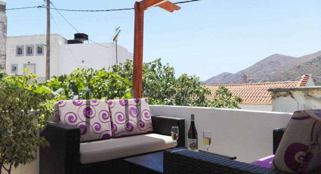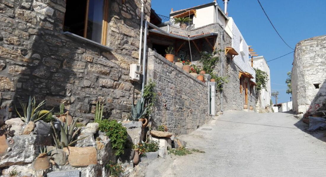 Вілла побудована у 1880 році, остання реновація була проведена у 2016 році. Має загальну площу 53 м2. Побудований у традиційному критському стилі має одну спальню, вітальню з обладнаною кухнею і верандою з панорамним видом на море і околиці.