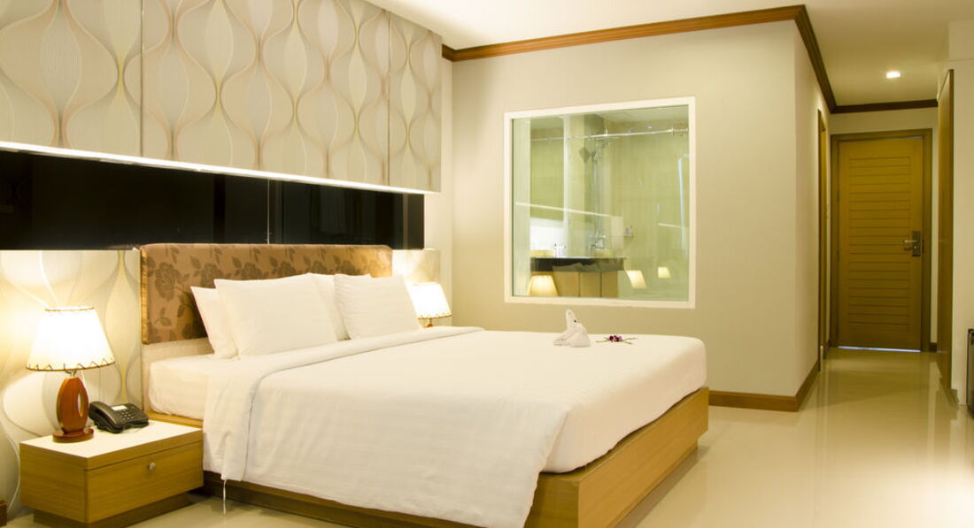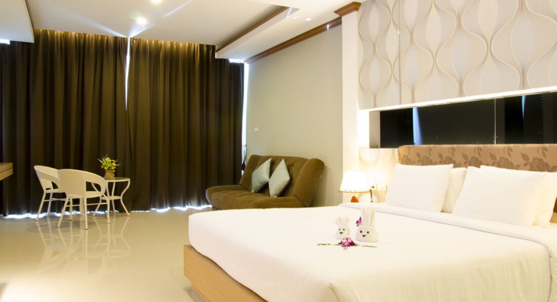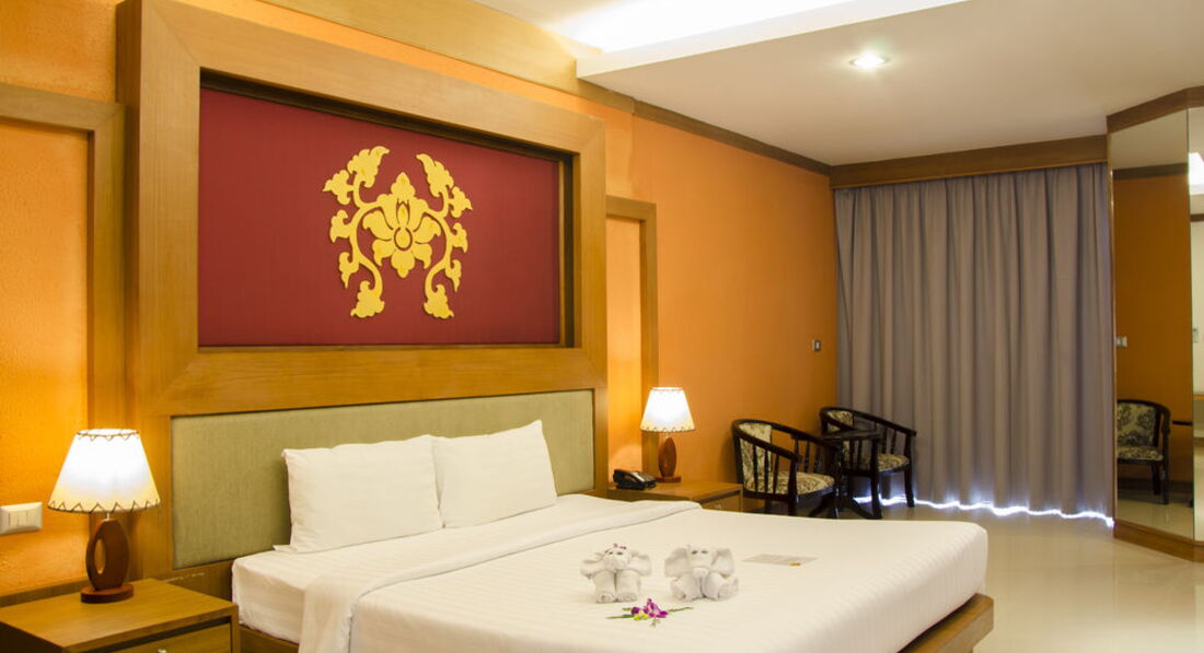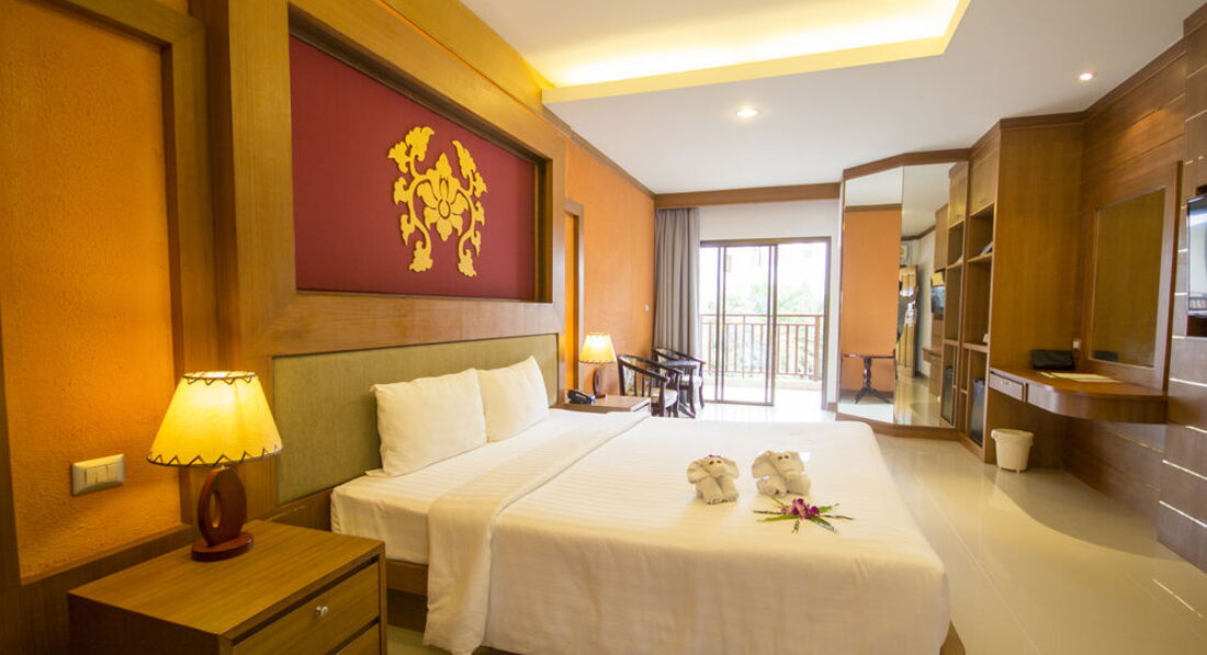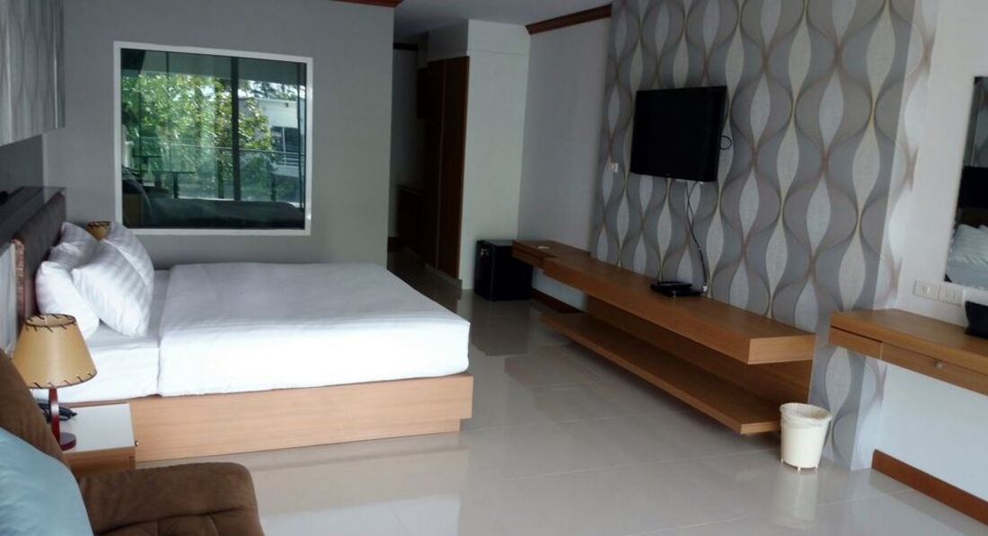 Отдыхали с мужем в ноябре 2016. Купили тур с номером Делюкс с видом на бассейн. Номер дали на 1-м этаже, номер темный. Много деревянной отделки в номере, что зрительно ссужает пространство. В общем, мы в номере с утра уже включали свет. При заезде постельное белье было грязное. Пришли, поменяли, добавили еще одно одеяло. Через несколько дней одеяло пропало, но добавили еще по одной подушке. Кровать в номере огромная, на ней спокойно может разместиться 4 человека. Потом началась чехарда с полотенцами для лица. То вообще их нет, ходили по 4 раза на рецепшин за ними, то клали какие-то маленькие квадратные тряпочки. Только два раза нам положили новые банные полотенца, в основном полотенца застиранные, по краям свисали нитки. Отель действительно практически в центре, до Бангла Роуд пешком 10 мин, до крупного магазина 15 мин. В бассейне много хлорки. Завтраки скудные. За омлетом -очередь, жаренные яйца разбирали влет. Бекон жаренный приносили не вначале завтрака, а часам к 8.00. Из фруктов каждый день только ананас и арбуз, иногда появлялась дыня. На рецепшин иногда дежурила русская администратор. Море через дорогу, пляж чистый, убирают каждый день. Море чистое.