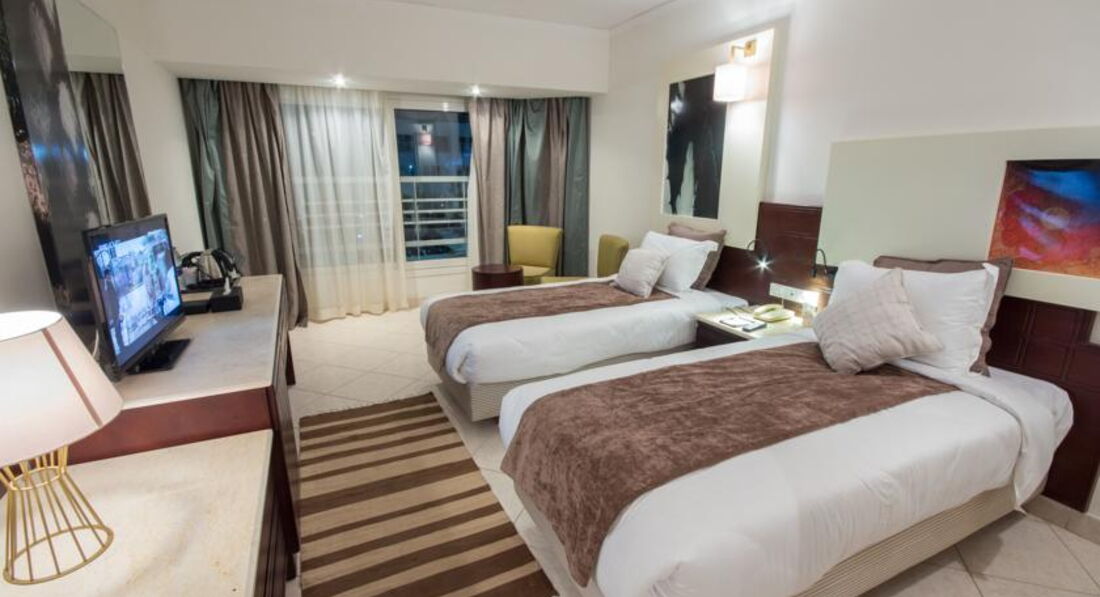 была в отеле в декабре 2016. покупая путевку понимала, что многого ожидать не стоит ,хотя до 4* он не дотягивает явно. ремонт несвежий, персонал смотрит как-то недружественно.) номер с виду ничего, но сразу бросается стойкий неприятный запах. ночью довольно холодно, кондиционер не работал + плохие окна, до конца не закрывались, вызвала мастеров, они ничем помочь не смогли) через щель в окне залетали комары, брала с собой раптор-спасал. зато есть плазма с фильмами на арабском). еда однообразная(салаты,причем просто нарезаны овощи-надо самому салат делать и добавлять заправку, выпечка, вареные овощи, суп, каша), небольшое разнообразие фруктов. возможно в сезон ситуация лучше-не знаю. бассейн не подогревался. расположение отеля неплохое-до аэропорта, старого базара недалеко. в отеле была несколько дней. остальное время провела в Каире, где получила массу впечатлений. вообщем отель очень бюджетный, но если ваша цель-путешествия, то все не так уж плохо)