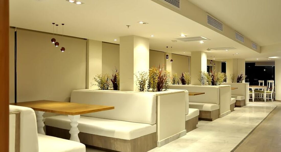 Ресоран- это громко сказано-столовка,находится в полуподвальном помещении и вечерами на ужине очень темно,освещение плохое. Завтраки очень бедны -нету фруктов,йогуртов и т.д.Обед и ужин более мение, я понимаю что это 4+ но за 10 дней мы неразу не видели мяса (говядина или баранина) только курица,"дубовые"котлетки(по 2 на тарелку) иногда рыба.Вечером когда в других отелях 4 столы к ужину накрывают скатертями и както украшают зал-здесь этого нет. Очень раздражают официанты когда убирают посуду со столов, не все- один АЛИ небрежно и громко бросает посуду в своу тележку, часто не попадаючи это все с грохотом летит на пол,когда делаеш замечание он еще и огрызается .Остальные официанты и бармэны хорошие.
