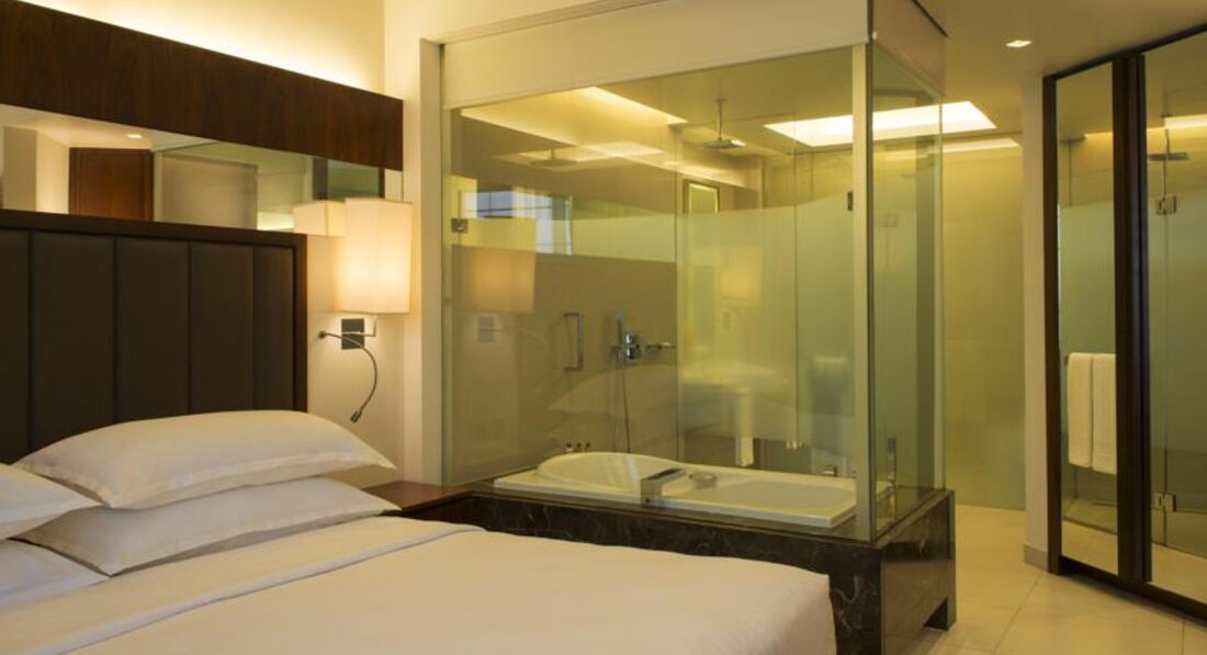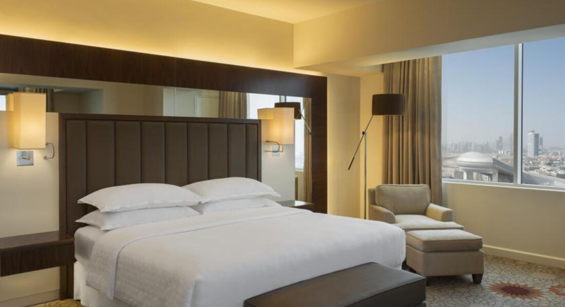 Отель прекрасный! Уже второй раз в Дубае от Шэратона ожидали меньше, но достойный отель, месторасположение порадовало -молл эмиратов близко - хорошо; на такси до аутлета не далеко - хорошо; до всемирной торговой деревни на такси не далеко - очень хорошо; до оазиса с цветами на такси не далеко - прекрасно :) Рекомендуем. Следующая поездка в Дубай будет именно в этот отель. Не могу не написать о ванной - это конечно романтика для влюбленных. Номера чистые, комфортные, просторные, есть софа. В ванной зубная паста, щетки, пилка, ватные диски- палочки, шапочка... для всех частей тела полотенца как я и люблю, все обновляется при каждодневной уборке номера. Открывающаяся шикарная панорама с 24 этажа бассейна, вода ни меньше 30 градусов. Сауна и паровая и сухая и все включено с шикарными средствами по уходу за телом марки H2K , то есть крема и все необходимые средства по уходу с собой везти не обязательно!!!! хотите массаж и т.п. то можно доплатить и все будет. Завтраки разнообразные вкусные. На вечер покупали арбузы в супермаркете молла эмиратов + купили ложку и вечером лежа на постели, по ощущениям схожей с периной, наслаждались летом :) Персонал профессиональный. Чувствуешь себя в этом отеле важным гостем. Всем кто любит комфорт, чистоту, профессионализм, удобное расположение, красивый вид вокруг- Вам именно в этот отель.