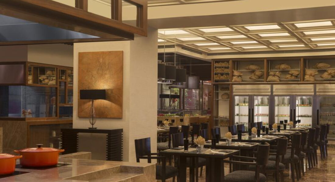 Brali tolko zavtraki. Ochen ponravilis. Svezhevizhatie soki po prosbe delali lubie, a apelsinovii sok bil postoyanno. Brali lepeshki s sirom, kotorie gotovili pri tebe, tam zhe vafli pekli. Vibor edi horoshii. Menyaetsa ne silno, no v lubom sluchae, nas vse ustraivalo. Vecherom brali buffet s salatami, na cheloveka gde-to 12 $, vse bilo svezhee i vkusnoe. Uzhin s salatami, po bokalu vina i krevetkami na grile oboshelsa v 60$. Poetomu zhalob na dorogoviznu net. V mall est fast food, tuda mi ne hodili. Hodili 1 raz v kitaiskii restoran, pryamo na vihode s otelya v mall. Rekomenduu crispy duck. Ochen vkusno.