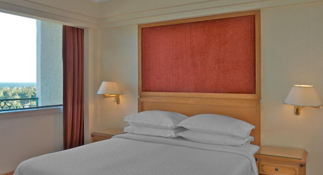 Была в этом отеле уже дважды в 2000 и 2006 годах, но отзыв собралась написать только сейчас. Первый раз отель произвел огромное впечатление, хотя жила в обычном стандартном номере, с видом на задний двор. Очень вышколенный персонал всегда приветлив. Приятная, ненавязчивая музыка звучит везде и в лифте и в туалете (внизу, не в номере). Второй раз ездила с мужем. Когда ехали, гид сказал, что отель 4*, т.к. он уже давно построен, но SHERATON не утратил своего очарования. В этот раз нас поселили в номер для молодоженов (не знаю почему, брали стандарт). Он значительно больше и в ванной комнате помимо самой ванной, как в стандарте, еще и душевая кабина. В каждом номере есть биде, чего не скажешь про отели в Хургаде. Вообще после Хургады понимаешь, как должна выглядеть «пятерка», и какая в ней должна быть атмосфера. Облазила весь отель, вид с пятнадцатого этажа (есть смотровая площадка) просто обалденный на парк MONTAZAH, на Средиземное море, даже на дорогу, которая проходит рядом. Попробовала все во всех кафешках и ресторанах отеля, обслуживание просто супер. Единственный минус – пляж хоть и считается отельным, но лежаки и зонтики за отдельную плату. Хотя в первый раз мы загорали, просто расстелив полотенца, а секьюрити отеля сами потом принесли нам зонты, чтобы местные любопытствующие не портили нам отдых. Мне понравилось.