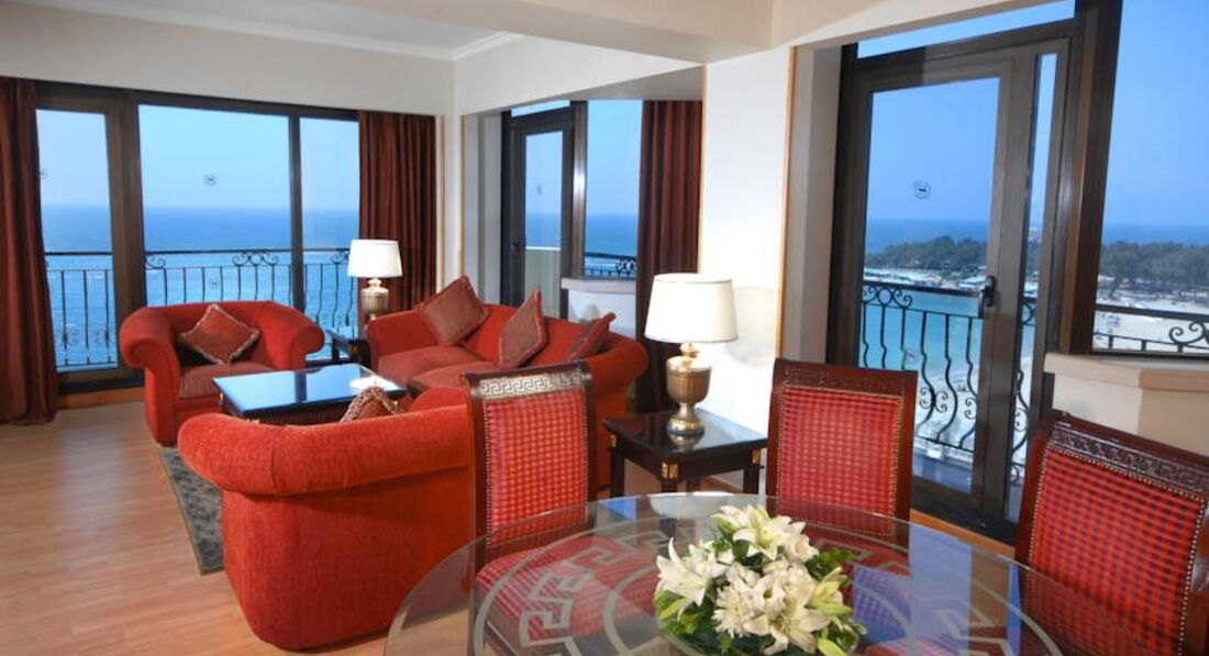 Были там вдвоем с супругой во время экскурсии Каир-Александрия из Хургады, отель неплохой, жили на 10-м этаже, выход балкона на море, это действительно очень красиво, но номера очень маленькие, потолки низкие, не очень хорошая звукоизоляция, по сравнению с основным нашем отелем было просто тесно (не в прямом смысле, конечно)еще не понравилось, что нет сейфа в номере, на рецепшн не спускались.Очень впечатлило, что в 4 часа утра была молитва, которую было очень слышно через пластиковое окно, честно сказать жутковато. Ужин не понравился, из всех блюд выбрал только одно, остальные блюда были просто "египетские", вот. В общем, оценка отелю - стабильная 4, самое интересное, что когда выезжали оттуда, гид спрашивает:"Как вам отель?", все отвечают что просто от него в восторге и только 6 человек из нашего сказали что у нас намного лучше...