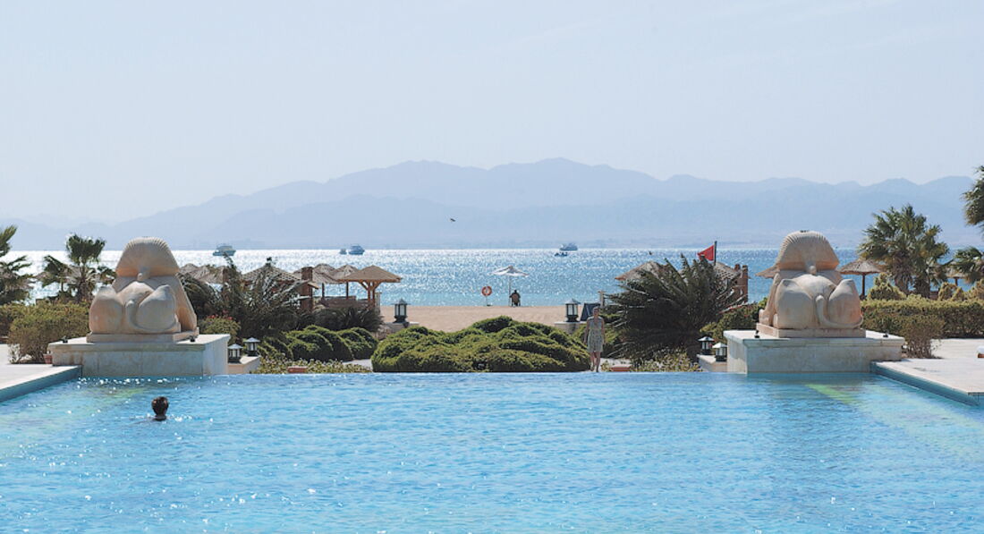Отель построен в стиле Карнакского Храма в Луксоре. Здесь даже своя "Аллея баранов". Русскоговорящий персонал на ресепшн и в детском клубе. Анимация развлекает отдыхающих в течение всего дня и вечером. Отель подходит для семейного отдыха с детьми.