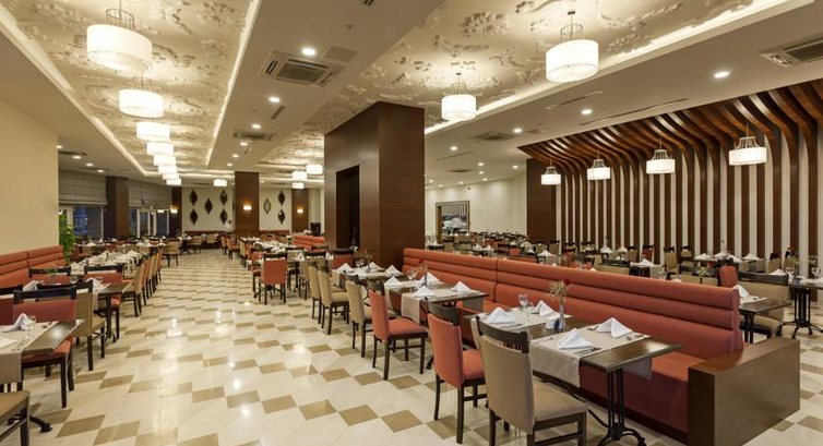 Бари та ресторани: головний ресторан розрахований на 1000 осіб (критий, з кондиціонером, літня тераса, дитяче меню, дієтичне меню, дитячі стільці), лобі-бар (24 години), бар біля басейну (10:00-24:00), бар на пляжі (10:00-18:00), диско-бар (23:00-02:00), вітамін-бар (10:00-23:00). 2 ресторани A la Carte: італійська, турецька - відвідування кожного з ресторанів безкоштовно 1 раз на тиждень, за попередньою резервацією.