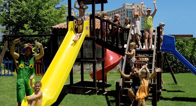 Для деток 2 бассейна(крытый с подогревом работает только в зимнее время и открытый), 3 водных горки, мини клуб для детишек возрастом 5-12, услуги няни платные, детская коляска за депозит, есть детское меню, детская площадка.