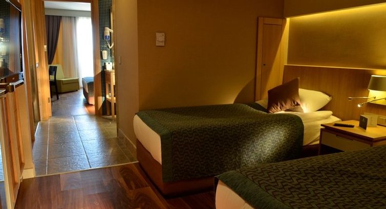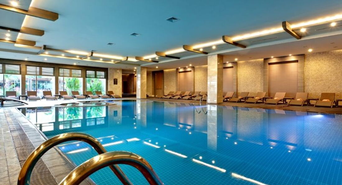 Отдыхали с подругой и 2-мя детьми 8 и 13 лет в начале ноября 2016 г. С погодой повезло, днем до 33 градусов, вечера прохладные около 17, море бодрит, но купаться можно, по ощущениям градуса 23. Бассейны холодные, в крытом тепло, но тесно. Анимация есть, как и везде, мини-диско, потом для взрослых, с 11 до 2 дискотека в отдельном здании. Вся анимация проходит внутри отеля, на -1 этаже, в номерах нам ни чего слышно не было, мы были на 5. Питание нам понравилось, всё свежее, качественное, сезонные фрукты, очередей в ресторане за едой практически нет, свободный стол всегда находился. Алкоголь нормальный, во всех барах можно взять соленые орешки. Отель находиться далеко от города, до близлежащих магазинов с сувенирами минут 20 пешком, но так как погода не жаркая, прогуляться очень даже приятно, до Белека такси туда-обратно 35 долларов, ждёт сколько хочешь, остановка рядом с отелем, торговаться смысла нет, цена фиксированная. Пополнение мини-бара и уборка номера ежедневно должна быть, но бывало и не приходили. Очень приятный момент: по приезду в номер приносят тарелку фруктов и бутылку вина с приветственным письмом от менеджера отеля. Обслуживающий персонал приветливый, мы всем улыбались и иногда давали на чай, поэтому всё в этом плане было хорошо и в барах и в ресторане игнорирования не было, да, в ресторане на обед и ужин напитки на стол подают официанты. Общий итог: отдыхом остались довольны, очень красивый регион Белек, открыточные виды на поля для гольфа с озерами, особенно на контрасте с ноябрьской погодой в Москве. Планируем приехать в это время в будущем году.