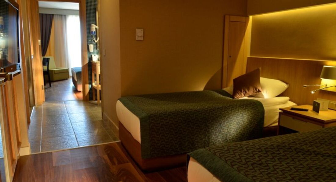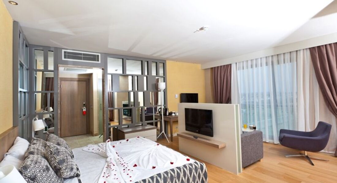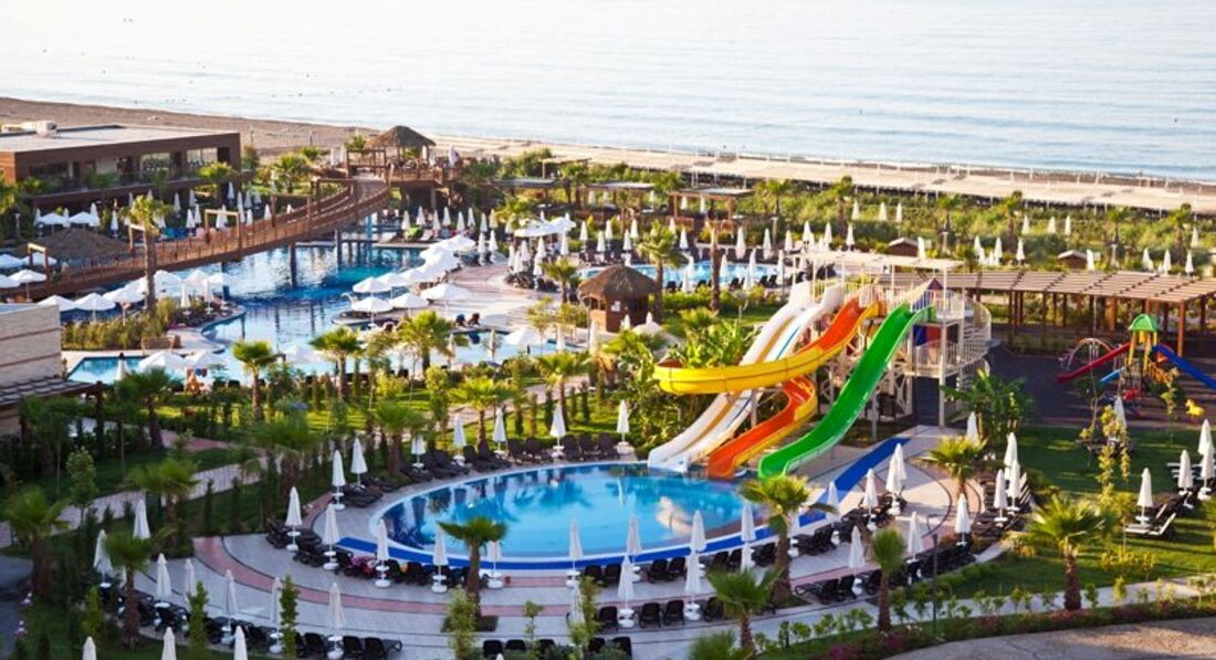 Отдыхал с женой и 2 подругами супруги. Прибыли в отель в 22 часа, поэтому заселение прошло за 10 минут. Проживали в корпусе № 2, на 1 этаже. Номер балконом, выходил на соседний отель, меня не напрягало, я там только курил. В номере 2 кровати, односпальная и двухспальная. Туалет и душевая кабинка, отдельно друг от друга. Удивило нахождение умывальника в общем коридоре номера, без двери. Всё работало исправно, к уборке и пополнению мини-бара, претензий нет. Замена полотенец и постельного белья, шампуней, гелей, постоянно. Недостаточное освещение номера в вечернее время. Светильников установленных в номере, недостаточно. Территория отеля компактная, всё в шаговой доступности. Территория чистая, море тёплое. На пляже чисто, есть холодильный шкаф с бутылочками питьевой воды. Бара на пляже нет, но так как всё рядом,, дойти до любого из них не составляет труда. Свободные лежаки в наличии в любое время, как на пляже, так и на море. Заход в море мелкая галька, специальная обувь не нужна. Имеется свой аквапарк и лунапарк. Основных баров два. Один на улице, один круглосуточный в лобби. Очередей практически нет, максимум 3-5 минут постоять. Питание без изысков, голодным не останешься. Из мяса в основном курица и говядина. Рыба ежедневно. Свинины нет, на завтраке нет бекона. Иногда бывает баранина раз в неделю. По пятницам рыбный день - тунец, раки, крабы, мидии, креветки и другая морская живность, но за всем этим выстраиваются огромные очереди. За час до окончания обеда или ужина, если что-то закончилось, то новое не добавляют. Тарелки, стаканы очень много с отбитыми краями. Возможно по причине того, что закрытие сезона и вкладываться в новую посуду нет смысла. В течении дня можно попить айран, покушать турецкие лепёшки, поесть мороженое. Мороженое также есть на ужин. Алкоголь весь местный. Основной контингент отдыхающих, немцы, голландцы. Русских и украинцев примерно одинаковое количество. В принципе отель понравился, но второй раз не поеду.