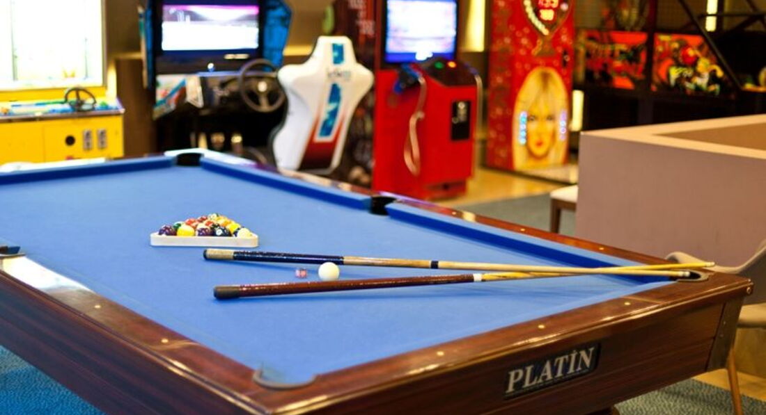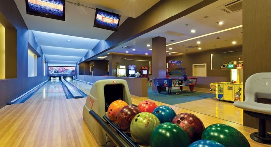 На территории отеля есть развлекательный центр - пара игровых автоматов, бильярд, боулинг. Иногда проводили там полчаса-час, дочке нравилось.