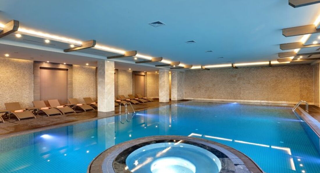 Нам понравился и спа-комплекс при отеле. Турецкая баня, хамам и финская парная были всегда прогреты и чисты. С удовольствием ходили туда ежедневно. Крытый бассейн (там же, при спа) стали подогревать на третий день нашего пребывания. Вода в нем нагрелась до 28 градусов, что было очень приятно. Внешние бассейны в это время года уже слишком холодные.