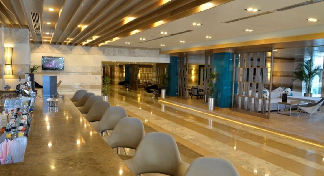 Отдыхали на ноябрьских праздниках в 2016г. С погодой повезло-днём было жарко,успели загореть за эти три дня . Территория отеля отличная, пляж тоже-всегда чисто. Покупали путёвку со стандартным номером без определённого вида (по идее д.б. быть на соседний отель, т.к. они стоят друг против друга) , но за 25 долларов без проблем поменяли на номер с видом на море. В номере всегда есть чай/кофе (электрический чайник и чай/кофе в пакетиках),всегда в мини-баре: пепси, спрайт, минералка, обычная вода, меринда, пиво. Пополняли каждый день. Халат , тапки,ватные диски и ватные палочки , шампунь, бальзам, мыло (жидкое и обычное)-всё пополняли ежедневно. Так же в первый день принесли в номер комплимент от отеля: бутылку вина и фрукты. Дискотека на территории отеля есть, все напитки там бесплатно. Работает где-то часов до 02-00 ночи.Находится она рядом с бассейнами, отдельно стоящем здании, на втором этаже - так что спать музыка не мешает. По еде: на завтрак всегда есть фрэш и он бесплатно, иногда хватает даже на обед. Мороженное тоже есть. Завтраки очень плотные - не так как во многих отелях кроме яиц и каши ничего не найдёшь. Были и яйца и оладушки и блины и разные тосты....и много-много всего кроме этого. На обеде глаза разбегаются от изобилия, ужин почти тот же, что и обед только добавляется ещё гриль (мясо/рыба). Не буду перечислять всю еду-но она очень разнообразная и очень вкусная. Отдельно чтобы подавали креветки и мидии не видела (может из-за количества дней), но в салатах они были регулярно. Уважаемые гости этого отеля, которые пишут , что есть нечего и нет разнообразия- я не знаю какое разнообразие Вам ещё нужно - в этом отеле подают даже сыр с плесенью (на ужин), согласитесь , не в каждом отеле так балуют! При мне был такой сыр двух видов: один сладковатый и очень-очень вкусный, в нём огромный букет вкуса- с розовым вином ну очень вкусно. Второй более пресноватый. По поводу фруктов - были, виноград черный и белый (оба сорта крупные и сладкие), сливы, хурма, гранат, груши, яблоки 3-х видов (желтые, зелёные, красные), дыня, апельсины, мандарины - вот эти все фрукты целиковые (ну кроме дыни-она естественно резанная и гранат примерно на 2-3 части разломанный). Но были ещё отдельно киви в сиропе с виноградом и дыней по-моему, видела но не брала, бананы видела только на сладостях в виде украшений. Сладостей много как и во всех отелях и торты и пирожные и пудинги и мороженное, сиропы разные , шоколадные пасты, мёд в сотах....короче много всего. Кофе у них видела только в кофе-машинах , что ещё один плюс, достаточно приличного качества капучино и горячий шоколад. Бар, что на ресепшне-работает круглосуточно, шампанское есть там всегда и на завтрак и на обед и на ужин (это всё бесплатно естественно) , бейлис по качеству ничего, коктейли тоже -главное знать, что вы сами хотите, всё сделают. У бассейна брала коктейль, сказала просто коктейль - намешали одну воду, мне не понравилось, взяла местное мартини-было очень горькое , всё оставила там. Так что если Вы сами знаете что Вам надо - то сделают в лучшем виде)))) Отель рекомендую! Удачи всем)))