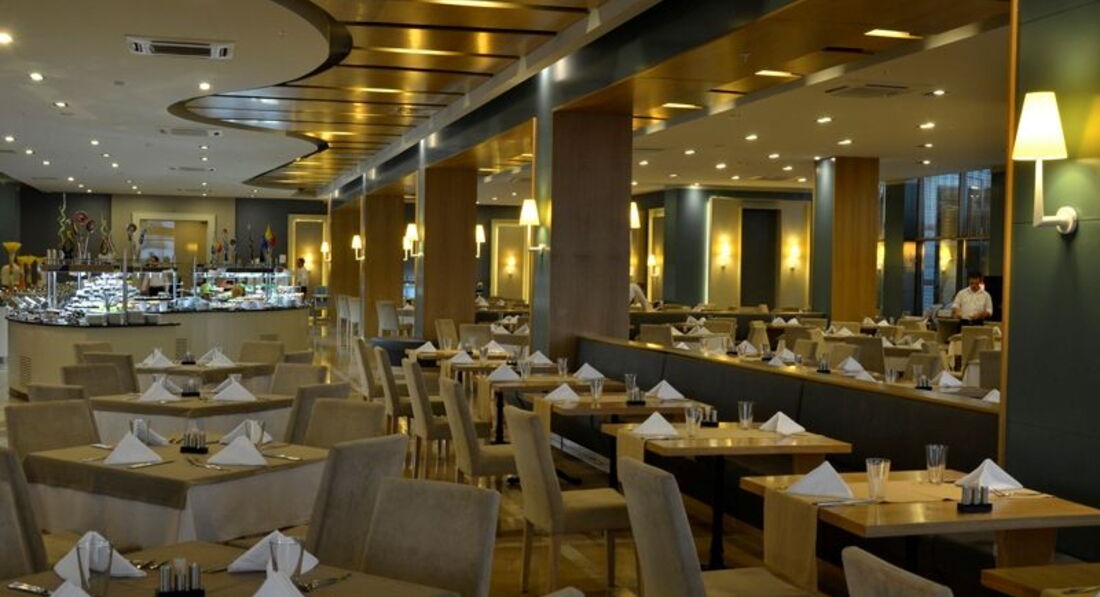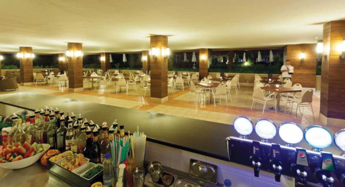 Бари та ресторани: Сніданок: 07:00-10:00, пізній сніданок 10:00-11:00, обід: 12:30-14:30, вечеря: 19:00-21:30, пізня вечеря з 23:00 -02:00. Шведський стіл. Ресторан розрахований на 300 осіб на терасі та 550 осіб у приміщенні. Зразкове дитяче меню: картопля фрі. Pomodoro Restaurant: італійська кухня; Terra Restaurant: ресторан міжнародної кухні, працюють з 19:00-21:30, 6 днів на тиждень (години роботи залежать від погодних умов). Потрібна попередня резервація. 1 відвідування одного з ресторанів на тиждень безкоштовно. Lemon Flower: кондитерська, час чаю з 16:00-17:00. Splash: бар біля басейну; Sense Night Club; Carissma: лобі-бар. Vista Bar.