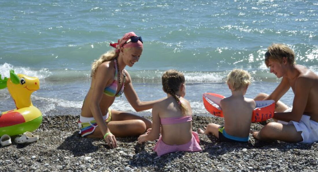 Море было не прозрачное, но очень теплое, берег чистый, лежаков хватает на всех, вход в море слегка колючий из за гальки, но может это и плюс - профилактика плоскостопия :)