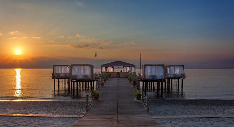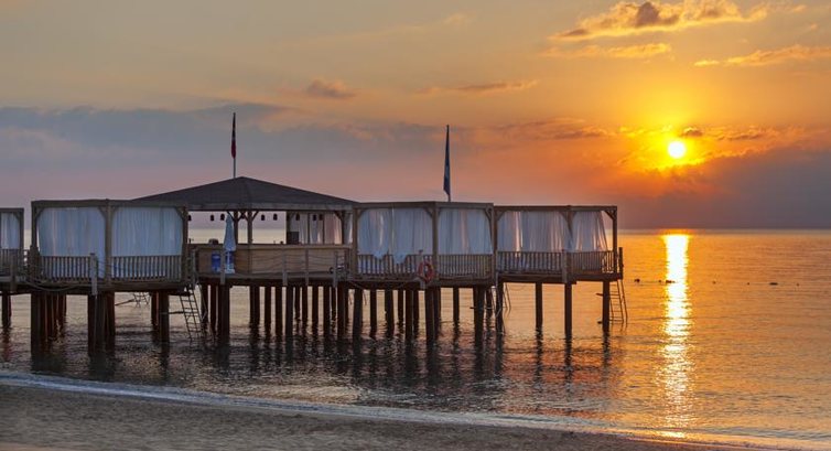 Оказались в этом отеле случайно! Ехали в Эйфорию (Текирова), а привезли нас сюда, в связи с овербукингом в Эйфории! Сами мы бы этот отель не потянули! По цене! Очень дорог! И все здесь супер! Территория нереально огромная, пешком не обойти! Есть куча разных транспортных средств на территории, и они очень прикольные и полезные! Есть отдельная территория аквапарка. Насколько я знаю, это самый большой аквапарк в Темирова, для любителей - впечатляет. Муж попробовал несколько горок, было страшно. Мы с сыном вообще не решились ни на одну. В аквапаре есть все свое - территория, ресторан, детская площадка. Можно оттуда не выходить целый день. Есть но! В детском бассейне нереально холодная вода. Наш ребенок провел там целый день приезда и заболел ангиной! Не досмотрели! Будьте осмотрительней! По страховке вызвали врача, нам прислали машину скорой помощи, доставили в частную больницу, выписали антибиотик, тантум верде, и мы лечились целую неделю. Благо: у каждого номера своя большая территория, с шезлонгами, столиками, пальмами. Очень комфортабельный отель!!!!!! Йогу по утрам проводят даже для одного человека! Питание выше всяких похвал. Кроме основного ресторана и а ля карт ест еще бары и кондитерские на всей территории с полноценной инфраструктурой и питанием. Есть можно почти круглосуточно. Анимация - дорого! Приглашенные группы и коллективы по вечерам, аниматоры работают весь день, развлекают и детей и взрослых. Наш ребенок ходил печь пиццу. Индивидуально, в печи, потом ею родителей кормили. Тесто, надо сказать, ум отъешь! Единственный минус отеля - это заход в море. У берега есть валуны, скользкие, покрытые ракушками. Если волна, сбивает в ног, падаете на камни, режете ноги. Есть небольшие участки без камней, нужно приноровиться. В остальном - твердая десятка!!!! ]очень рекомендую.