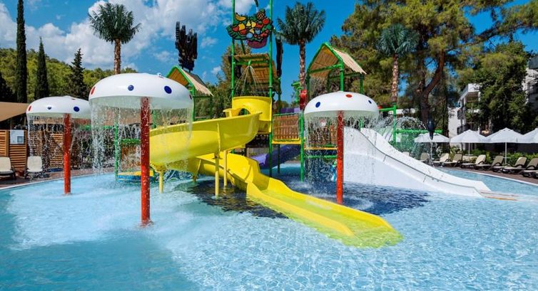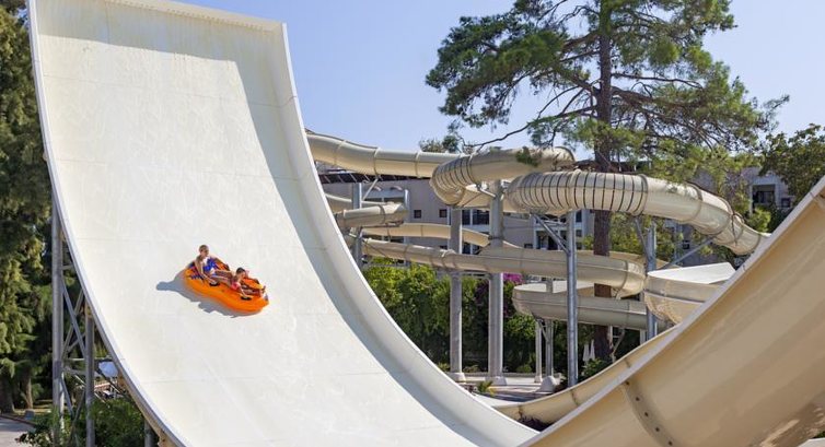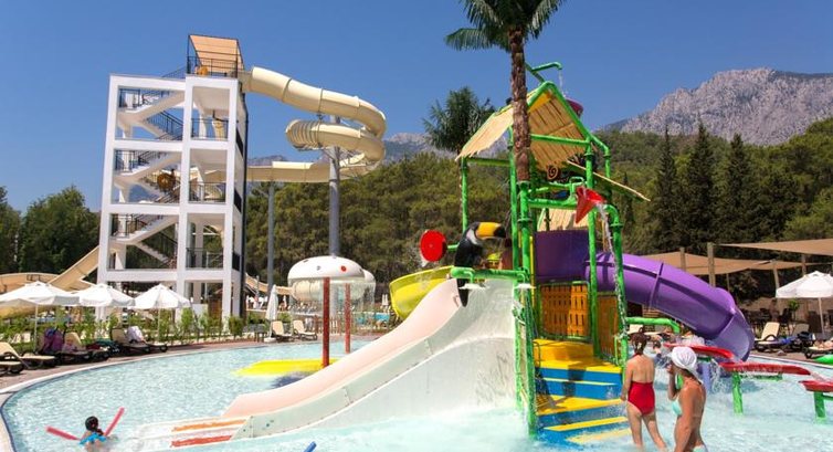 В этом отеле особая атмосфера. Радость, приподнятое настроение, беззаботность, наслаждение отдыхом не покидают здесь ни на минуту. Удивительно вежливый персонал, который запоминает и встречает нас, как родных! Прекрасное питание как для детей, так и для нуждающихся в диетическом столе! Замечательные вечерние шоу! Хороший пляж, 2 пирса - чудесный отдых , прекрасное , чистое море . Анимация на центральном бассейне, бары, рестораны A ля карте. Мягкий, плотный газон так и манит пройтись босиком или расположиться в гамаке, или на качелях среди мандариновых деревьев. Замечательный домик для котов и кошечек живущих на территории. Особенно впечатляют горки , подходишь и дух захватывает. Это, конечно, для экстрималов! Для деток горки маленькие.