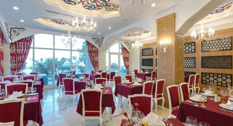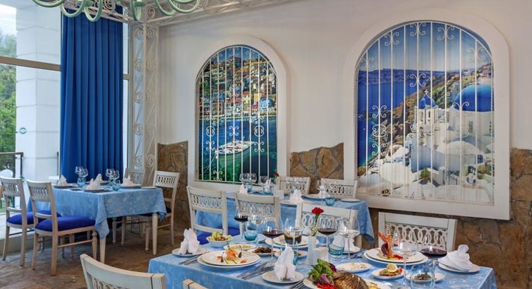 • ресторани a la carte: 4 (італійська, турецька, рибна, китайська, за тиждень проживання відвідування одного ресторану – безкоштовно, за попереднім записом)