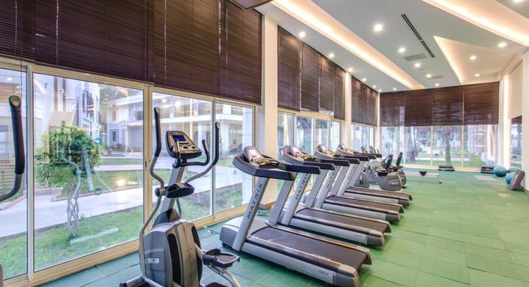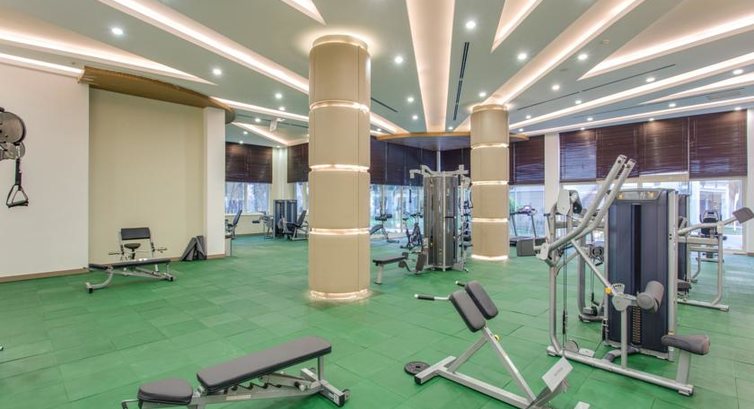 Территория очень большая ,зеленая и красивая.Бассейнов штук 6 ,не считая аквапарк,кстати,весьма приличный,после закрытия которого ( в 16.00) народ расходится и наступает нирвана. Отличная для отелей тренажерка,люди ее не жалуют.))