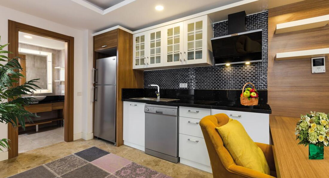Готель розташований за 11 км від аеропорту м. Анталья, за 700 м від моря. Складається з однієї 6-ти поверхової будівлі (2 блоки) та кількох додаткових 6-ти поверхових корпусів (у 2019 р функціонує лише основна будівля). КОНЦЕПЦІЯ "ЛІТО 2019". Курортний готель Sherwood Suites розташований на березі моря у районі Лара. Складається з однієї 6-ти поверхової будівлі. Відкритий у 2018 році. Готель чудово підходить для відпочинку сім'ям з дітьми. Площа території 19000 м². Дата побудови 2019 р.