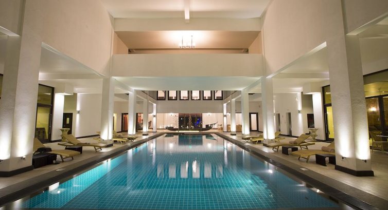 БАССЕЙН: достаточно большой; макс. глубина 1,40., есть часть для детей. Вода прохладнее, чем в море, потому что крытый. Никогда не пахнет хлоркой. Совсем. Чудесный вид из бассейна :)