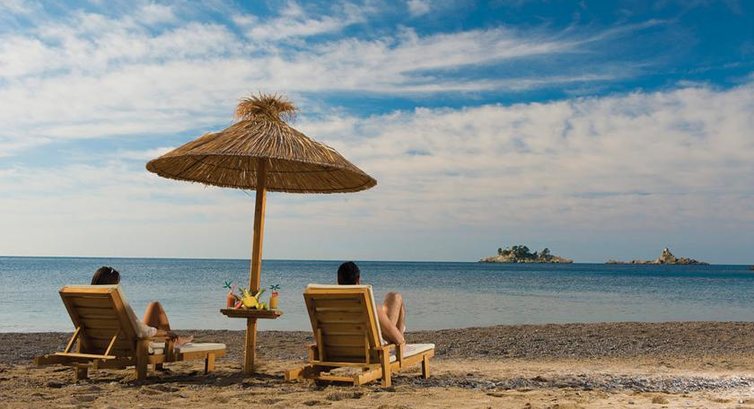 Пляж: піщано-гальковий пляж, за 150 м від готелю