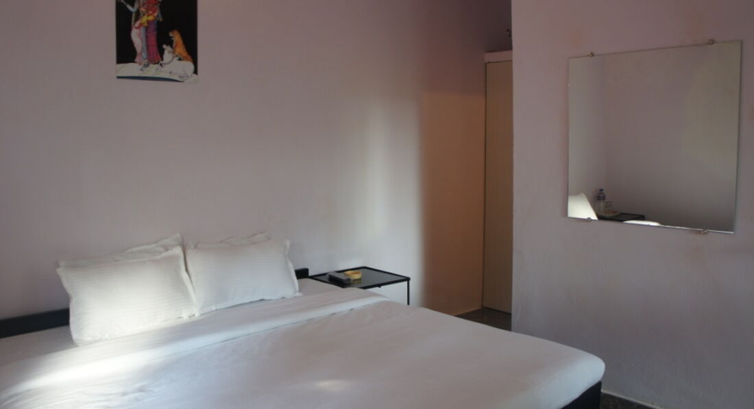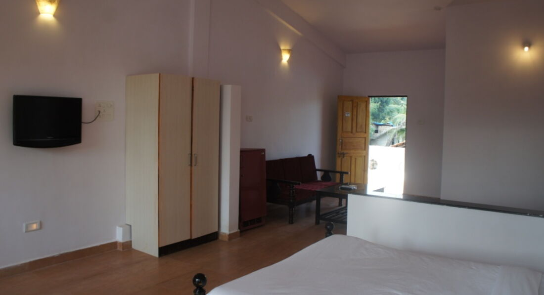 Останавливались в этом отеле с мужем. В Индию ездили уже не первый раз и были приятно удивлены. Привезли нас в отель часов в 7 утра и сразу заселили. Номер оказался очень чистым, что редкость для северного ГОА. Попытки найти хоть одну пылинку-соринку к успеху не привели. В номере стояла большая кровать, 2 стеклянных столика, 2 кресла, огромный сейф, холодильник!, телевизор!, кондиционер. На потолке как всегда вертушка. Постельное белье и полотенца мы конечно взяли с собой. Их не пользовались, разве что полотенцем для ног. Так как качество стирки в Индии оставляет желать лучшего. Но это не проблема, просто возьмите с собой старенькое белье которое не жалко оставить, чтобы не везти обратно. Напрягало только то, что душ находился перед унитазом и комната очень маленькая. То есть полы там мокрые и потом шлепаешь мокрыми лапками по комнате. А и ещё шкафа как такого нету, его заменяет огромный сейф. На стене висело несколько крючков.