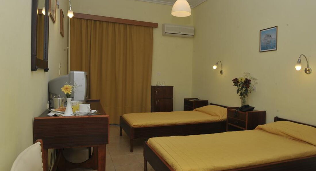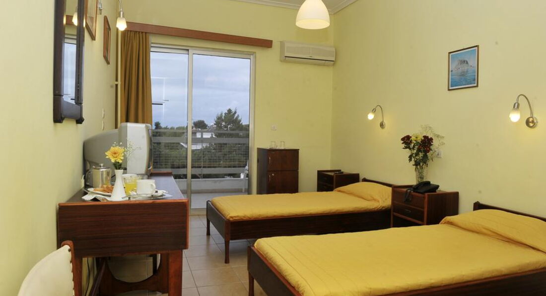 П'ятиповерхова будівля, прямий вихід на пляж, ресторан, бар, інтернет, чудові краєвиди на гори та море. Зручно розташований у легкої доступності від популярних курортних районів Лутраки, Корінфос, Кінетта.
