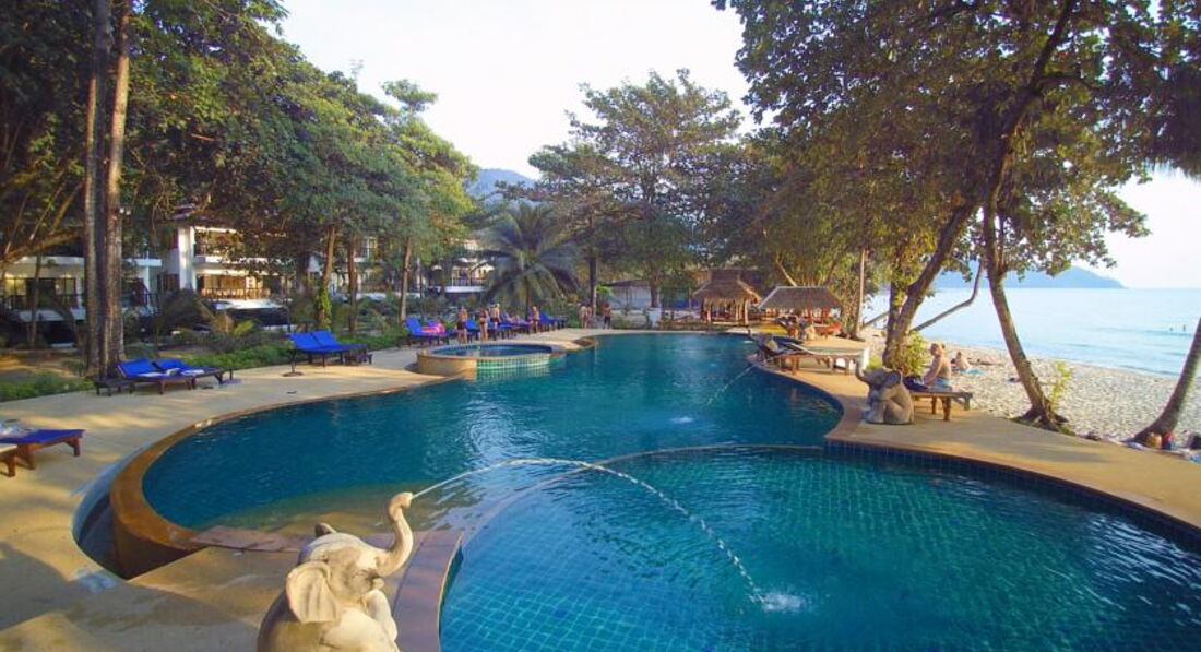 Отель расположен вдалеке от других отелей, баров и ресторанов на пляже Lonely beach, что обеспечит Вам тихий и спокойный отдых. Красивый пляж, белый песочек и лазурная водичка. Берег не пологий, на небольшом расстоянии от берега уже глубоко (в отличие от пляжа Kai Bae). Питание стандартное для Тайланда, голодными не были. В баре на пляже цены заряженные - кокос за 120 бат, хотя в городе можно за 20 взять.Отель расположен в небольшом заливчике, поэтому море достаточно спокойное. На берегу бассейн со слониками, душ для смывки морской воды с тела. На ресепшене бесплатный wi-fi.