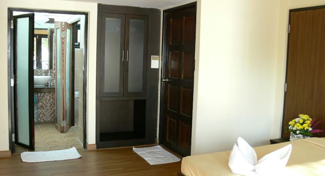 Отдыхали в этом отеле в ноябре 2016, приехали на байках. Цена за номер на двоих 2400. У отеля очень большая территория и соответственно пляж, размещение бунгального типа, домики в 2 этажа по 4 номера в каждом, в итоге туристов не так много и на пляже 1 человек на 10 метров, есть ощущение уединения. Мы отдыхали на первом этаже, очень шикарно, отдыхаешь в номере и через стеклянные двери любуешься морем. Номера конечно не люкс, не новые, но я лично ничего не замечала на фоне всей красоты. Если ехать на ко чанг, то в этот отель. Единственный ньюанс: рядом нет магазинов и ехать нужно только на байках, для нас это была не проблема, а вот если вы не планируете их брать, идти до магазинов и фруктов по горным дорогам далековато, да и тяжело. Завтрак в отеле хороший. Пообедать и поужинать также можно в отеле, цены на ко чанге не кусаются, 150-200 бат вполне мне хватало на приём пищи. Можно по пляжной линии прогуляться до соседних отелей и перекусить, что мы и делали. Так что если вы на байке и хотите получить действительное удовольствие от островного отдыха не за самые большие деньги, советую этот отель. Wi fi есть везде, единственное бывают перепады с потерей.