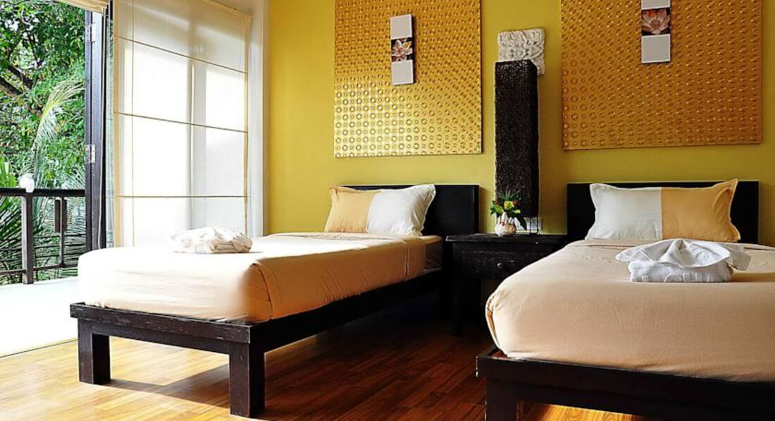 Из Тайланда вернулись 4 дня назад. Отдыхали неделю в Паттае и неделю на Ко Чанге. От острова мы в полном восторге. Приехали самостоятельно, поэтому жили в разных отелях. У этого отеля самый лучший пляж. Мы жили в новом бунгало на горке через дорогу. Бунгало еще до конца не достроенные: нет перил на лестнице, а лестница довольно крутая, также не хватает крыши на крылечке, хотя столбы для нее есть. Но это мелочи, зато за стеклянными дверьми открывается замечательный вид на джунгли и на море. Номера новые в светлых тонах и очень уютные, но довольно простенькие: кровать, плазма, кондиционер, холодильник и маленький шкафчик. Убирались каждый день.