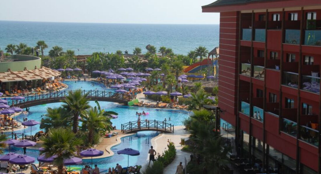 ХОРОШИЙ отель и не верьте плохим отзывам. Пишут,что был пожар, но и следа от него не осталось и запаха нет. Персонал вежливый, заселили сразу в главный корпус на третий этаж. Номер супер, все новое, чистое. Мебель сделана под старину ( некоторые думают, что это обшарпанная мебель)). Я не знаю, как в других номерах, но у нас было все отлично. Уборка каждый день, полотенца меняют и бар пополняют каждый день. Полотенца, правда иногда попадаются края обтрепанные, но это не критично. Я не знаю, кому не понравилась еда, но каждый день меню менялось, и баранина и курица и говядина и рыба, фрукты ( арбузы, черешня, дыни, апельсины, грейпфруты, яблоки....ПРИЕЗЖАТЬ надо в сезон, а не в в начале мая и требовать все разнообразие фруктов. Заплатите больше и выберите другой отель. Шеф повар всегда следил за всем, бесплатное мороженное в кафетерии на замечательной террасе. Есть горки, правда с небольшими стыками, есть детский бассейн с горками, пару взрослых больших бассейнов. ВСЕ находится в шаговой доступности и море и бар и бассейны. Территория красивая, зеленая и чистая. Персонал старается, каждый день представления ( в основном делали сами аниматоры) Вся анимация правда, мне так кажется в соседнем отеле получше была, для семей с детьми- самое то, а вот молодежи там будет скучновато...хотя на дискотеку, кому надо было, возили в клуб. Море замечательное......Вообщем впечатления положительные, особенно за такие деньги!!!