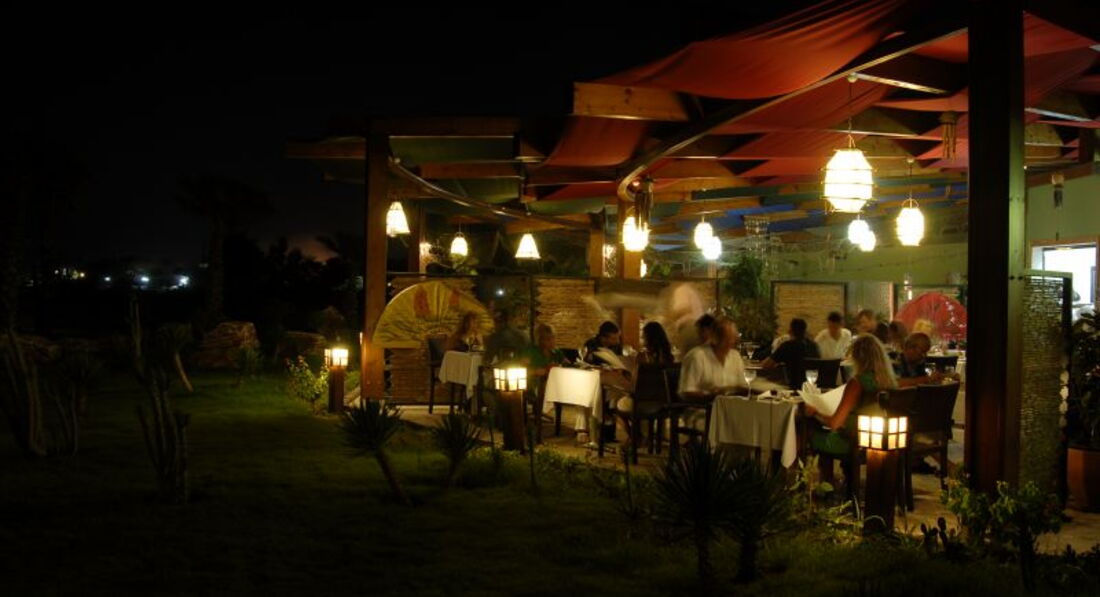 Ресторан. Еда обычная, ничего особенного. Что удивило, так это то, что не было йогуртов и каш. Очень странно. Пиво вкусное, лепешки просто замечательные (ими в основном и питались), виски ужасный, вино-уксус. Но это не самое страшное, с чем вам придется столкнуться в этом ресторане. Ваше приключение начнется с того, что вам придется найти чистую тарелку в "чистых" тарелках, которые на самом деле выглядят так, что с них просто скинули еду и поставили в чистое. Чашку для чая тоже нужно выбирать с умом: практически на каждой губная помада. Нам обычно везло раза с пятого найти нормальную, без макияжа. Вилки грязные, столы грязные, официанты-спящие мухи. Салфеток на столах нет, приходилось самим брать, потому что официанта просто не дождешься. Не трудно догадаться, что практически весь отель болел. Весь пляж кашлял, чихал, некоторые ходили со следами от банок на спине. Не удивительно, ведь посуду просто споласкивали, а не мыли. Ребенок заболел на четвертый день, мама на пятый.
