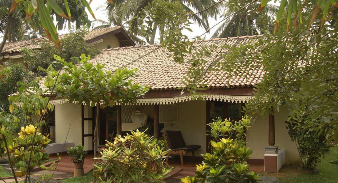 Отель тянет максимум на 3 звезды. А сервис и на 2. Не каждый день меняли постельное белье (к слову сказать местами дырявое). Полотенца серо-коричного цвета, иногда пахли мужским парфюмом. Впечатление, что полотенца меняли между номерами не стирая. Чаевые увы не помогали, чище они не стали. Эта проблема была у всех отдыхающих в отеле. Питание очень скромное (отель специализируется на аюрведе и выбор исключительно из диетических блюд). Морепродуктов не было ни разу, в основном овощи в карри и курица. Маленький выбор фруктов. Зато огромное количество комаров. В номерах спали только под москитной сеткой. Развлечение в отеле только одно - массажи и аюрведическое лечение. Цены европейские (1,5 часа массажа 110 евро), а качество, увы, нет (благо есть с чем сравнивать). У отеля очень красивая зеленая территория, много бурундуков, варанов, даже крупные змеи (видели на пляже). Пляж огорожен железной сеткой (с маленькой калиткой для выхода к океану) от местного населения (которое прилипает к этой решетке, громко пытается привлечь внимание туристов, а также ночует у этой калитки). Девушкам купаться без европейских мужчин было невозможно, от внимания местных мужчин не помогало ни молчание, ни откровенный мат на всех языках. Вид на океан предполагается в номерах исключительно через решетку. Своего пляжа у отеля нет, он муниципальный. Соответственно никто ни за что не несет никакой ответственности. У друга украли старые сланцы. Отель не рекомендую никому.