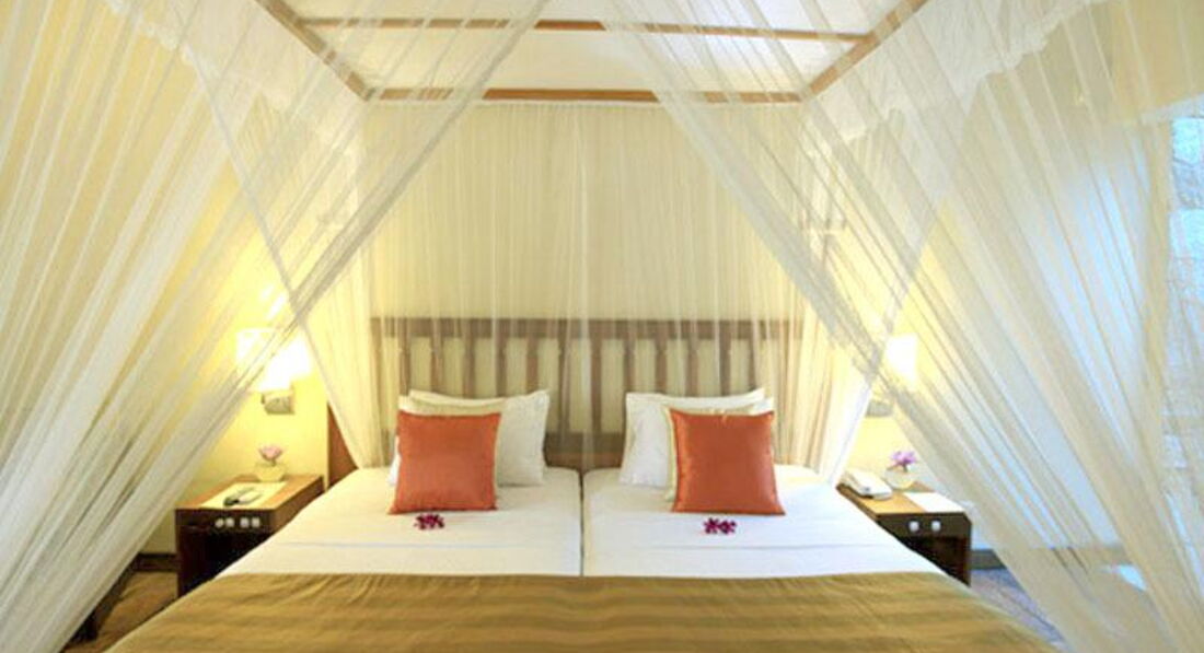 Номера в отеле довольно уютные, кровать с москитной сеткой, которую каждый вечер приходят и расправляют вокруг кровати. Зажигают спиральку от насекомых, хотя комаров практически не было. Зато ящериц в номерах предостаточно.