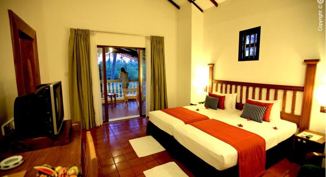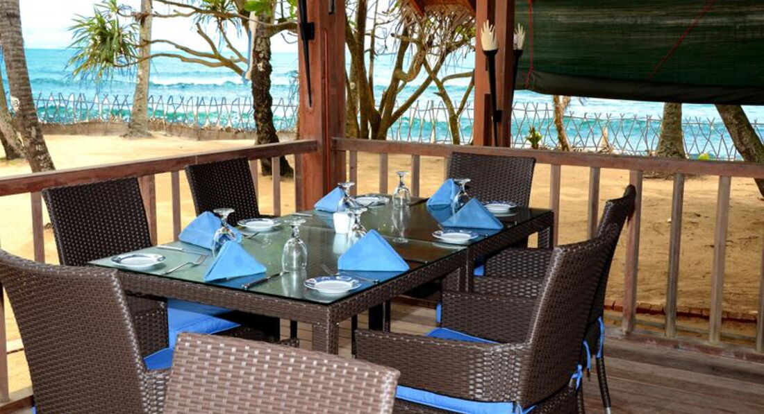 Только что вернулись из этого отеля. Мы проживали в номере бунгало De luxe. Номер не плохой в плане площади, но мебель старая, отремонтирована только зона санузла. Каких-либо существенных проблем в плане проживания не было, но сказать, что этот отель 5 звезд нельзя, максимум 3... Постельное белье, конечно же меняется по запросу, но оно далеко не белого цвета, такая же ситуация с полотенцами... Уборка номера на твердую тройку... Питание: завтраки никакие, если не лечится по системе Аюрведы, то европейский стол очень скуден. Ужины более разнообразные. Опять же возвращаясь с сервису, по-моему был всего один вечер, когда наконец-то поменяли скатерти на столах))) Персонал говорит только на английском или немецком языках, без знания языка делать там просто нечего. Вплоть до того, что не будет возможности даже заказать себе еду в ресторане, так как меню только на английском. Было огромное количество туристов из России, у ребят возникали проблемы с заказом. У обслуживающего персонала (создавалось такое впечатление) не было даже желания помочь. За территорию отеля лучше не выходить, так как кроме ближайшей деревушки с местными жителями, железной дороги ничего интересного не увидеть. Надо было выезжать, самый доступный транспорт - это тук-туки. Поездка на них довольно опасна, так как сложилось впечатление, что что такое правила дорожного движения на Шри-Ланке не знает никто))) Из аэропорта мы ехали до отеля 2 часа, расстояние порядка 65 км. Дорога одна, по которой едут грузовики, автобусы, машины, тук-туки и свободно гуляют коровы. Полная экзотика)). На территории отеля живут игуаны. В номер к нам заползала змея, которую обслуживающий персонал с криком "Dangerous" пытался каким-то образом из нашего номер выкурить, также в номере жили две маленькие ящерицы, вообщем живности на территории отеля очень много!!! За две недели отдыха восхищал только океан. Пляжа у отеля нет, необходимо пройти до спуска к океану. Он безумного красив! Если Вы планируете отправиться на Шри-Ланку необходимо быть готовым к спартанским условиям и наслаждаться только красивым закатом, солнцем и океаном с минимум комфорта. Это наше мнение, может нам не повезло с отелем((