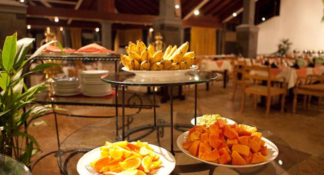 Питание в ресторане шведский стол,но выбор конечно не как в Турции или Египте,но голодными никто не ходил. Безумно вкусные десерты, из фруктов: манго,папая.арбуз,маракуя,ананас,апельсины каждый день. Обязательно попробуйте их йогурт.Я его ела три раза в день -это нечто. Питание трехразовое,чай-кофе бесплатно, стакан теплой воды тоже. Соки. пиво -за деньги. Свежевыжатый сок стоит менее 2$