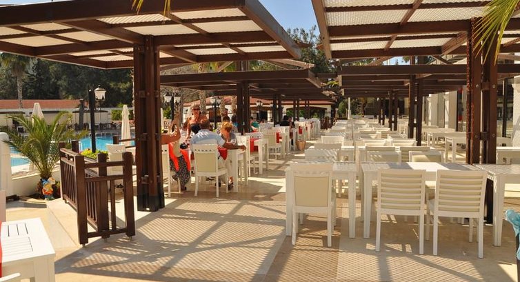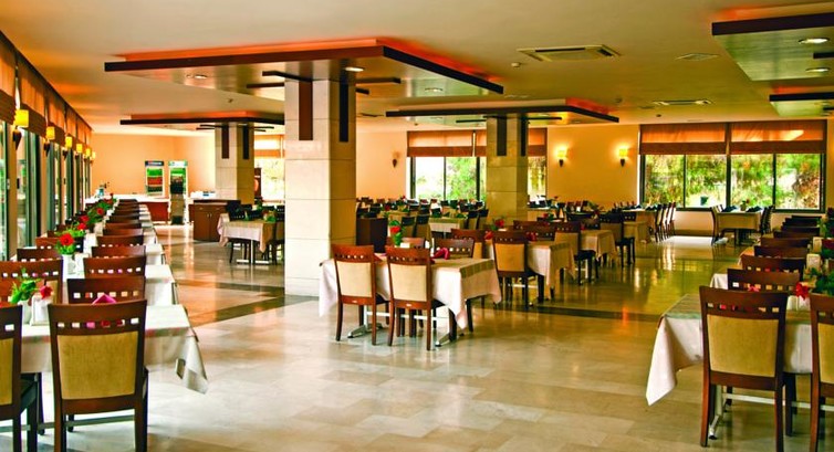 Бари та ресторани: головний ресторан розрахований на 300 осіб (критий, літня тераса, дитячі стільці), лобі-бар (10:00-17:00), бар біля басейну (10:00-00:30), бар на пляжі ( 10:00–18:00). Ресторан A la Carte: турецький – безкоштовно 1 раз за весь час проживання, за попередньою резервацією.