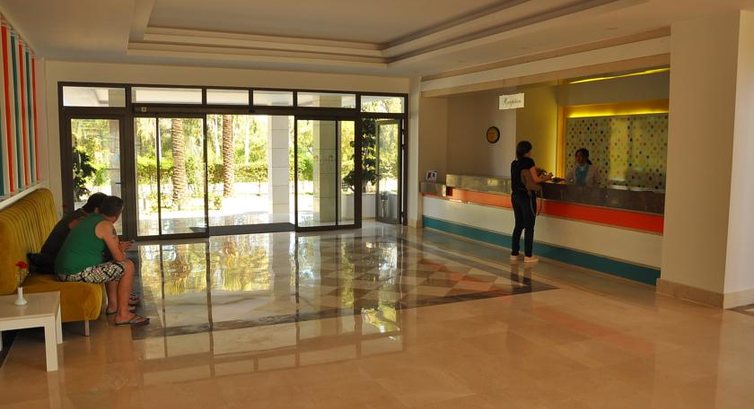 Отдыхали в этом отеле второй раз, перед этим два года назад, когда он был ALLY. Раньше отель был лучше. Летели с турецкими авиалиниями! перелет просто шикарный! Самолет новый, все работает, смотрели мультики, кино ,еда "от пуза" ,соки,газировка, все что хочешь, все четко, быстро,без задержек, в пути 2ч 50мин.Встречали нас Пегас, тоже порадовали, гиды все очень доброжелательны, по дороге много интересного рассказывала девочка, хоть мы уже 12 лет отдыхаем в Турции, много еще нового послушали.Ехали до отеля 1ч.40 мин., мы были 5-м отелем. Приехали утром, разместили после 12ч. В отеле есть номера БЕЗ БАЛКОНОВ! меняйте лучше сразу.Вообщем видно что обновили ресепшен, лоби бар,террасу в главном ресторане.Но это все мелочи, по сравнению с тем, что обслуживающего персонала просто не хватает и это очень ощутимо: посуды не хватает,столы не убирают, очередь в бар во время ужина, уборка тоже ни о чем. Анимация -ерунда, но почему-то они удивляются, как будто не знают что должна представлять из себя анимационная команда.В мини клубе девочка Женя одна за всех! открыла мини клуб и пошла проводить гимнастику или еще что-то. Дети сами по себе. Сервис до пляжа очень редко ездиет, водитель всегда где-то кушает, пьет чай, вообщем не спешит. Бар на пляже перестроили, полная ерунда. Еды стало меньше, теперь там диско -бар платный, полный каких-то непонятных людей: шеф,бармен,брат шефа,сват бармена и вся сватья-братья, которые едят там и пьют в нашем баре все, что НАМИ оплачено при покупке тура.При всем при этом еще позволяют себе оскорбительно высказываться на Турецком . У нас случился с ними конфликт, испугались они только полиции, на пляже кроме нашего бармена нет ни спасателей, ни секьюрити. Мальчик бармен шустрый, молодец, и по пляжу стаканы соберёт, и в баре пива нальет и посуду уберет после обеда и с детьми со всеми поиграет. все на нём. Рядом бар отеля Maya, вечером была там супер дискотека с их аниматорами, это было весело,круто.Много молодежи! Я бы посоветовала этот отель, или отель Venus,там весело! Из плюсов : МОРЕ,СОЛНЦЕ .вкуснейшая свежая еда, не плохие спиртные напитки,мы пили виски-кола,джин-тоник,пиво. Из минусов: номерной фонд,нехватка персонала,посторонние люди в баре на пляже.Экскурсии покупайте у гидов.Мы сьездели на яхте, покупали на углу возле отеля, так нас чуть не оставили в Сиде. Яхта уплывала и мы запрыгивали на уплывающий трап.Это было ещё то ощущение. Всем хорошего отдыха.