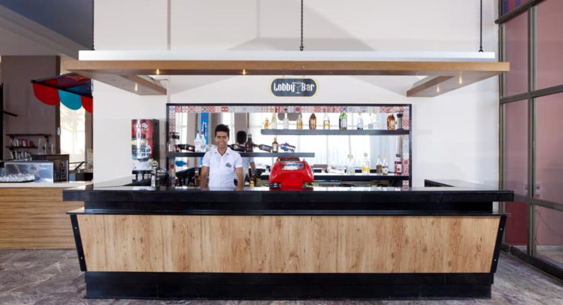 Бара в отеле 2. Рядом с рестораном и чуть пониже отеля (между бассейнами и пляжем). Алкоголь - пиво бутылочное, вино красное и белое (сухое), водка, виски, коктейли при желании. Официанты и бармены дружелюбные.