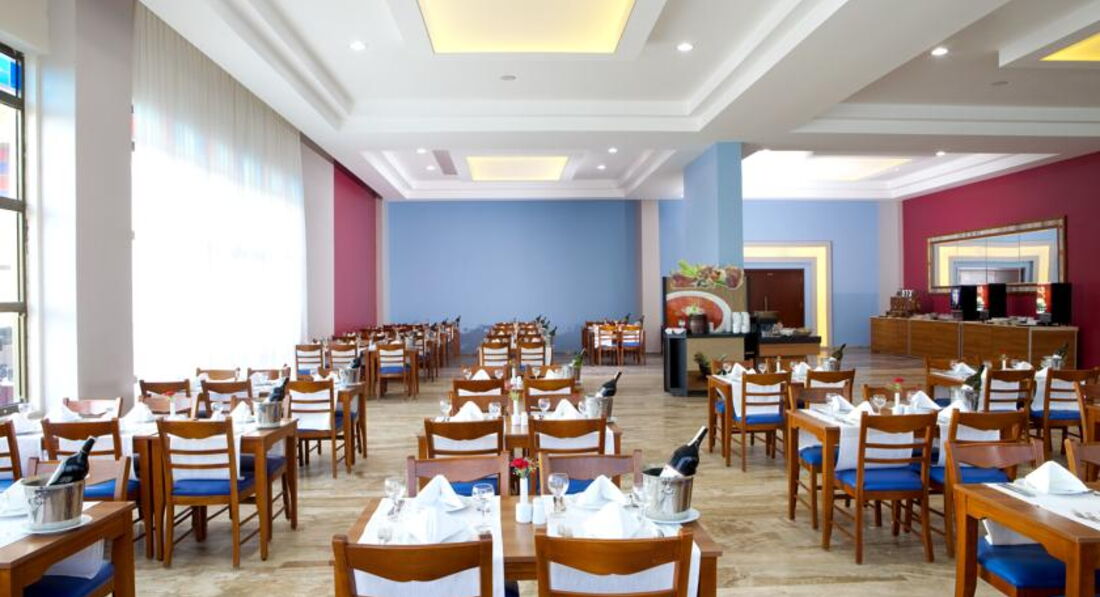 Отдыхали в отеле с дочерью и внучкой 3 года с 13 по 20 июня 2017г. Так как погода в Самаре была весь май и половину июня ,мягко говоря, некомфортной? решили уехать с ребенком 3 лет в лето. О чём, сразу скажу, ничуть не пожалели. Внучку вывозили первый раз,очень переживали ,как перенесёт полет и акклиматизируется. В Турции 7раз. Отель находится в посёлке Кумкёй, вдали от шума и суеты, на первой береговой линии.Все отели вдоль первой линии связывает променад,очень красивые виды на отели, есть где погулять, посидеть, кто любит спорт-побегать, в общем это большой плюс.До пляжа 2 мин хода, песок (не очень чистый),заход в воду пологий.Хороший Бар у пляжа, где можно и пообедать.Вообще отель славится своим питанием в категории бюджетных пятёрок.Действительно, голодным не уйдёшь, всего вдоволь,но вот детское меню, как таковое, отсутствует, накормить ,конечно, можно,но каш,горячего молока и т.д. нет. Выпечка, сладости, салаты, мясные блюда-все вкусно.Из фруктов только яблоки и апельсины, маловато... Правда был арбуз. В ресторане старались убирать быстро и чисто.Понравилось, что на столах стоит бутылка красного и белого вина, бутылка воды.Заселение прошло быстро, привезли часов в 8 в 10 дали номер 1515, пятый этаж, вид на море,просторный, чистый, хороший балкон.Убирали каждый день,минибар пополняли каждый день, белье и полотенца белоснежные,чаевых не оставляли, все и так убирали как положено.Сейфом не пользовались.Территория небольшая ,очень зелёная, ухоженная,приятно посидеть,красивый дизайн.Анимация ненавязчивая, молодцы все.Ходили на аквааэробику,зарядку-растяжку, очень нравилось,вечерние мини-дискотеки для детей, вечерние шоу для взрослых, молодцы ребята и девчата. Маловата территория для для детского уголка и детский клуб сам мал да время его работы не совсем удачное.Обслуживающий персонал вежлив,корректен,трудолюбив.Очень понравилась Анна- отельный гид от встречающей стороны ODEON TOURS.Молодец, всё объективно и полезно в её информации. В общем отдохнули отлично, накупались,загорели, зарядились летом и всем за это СПАСИБО.Ну и для моей внучки Этот первый блин оказался не комом.Перелеты перенесла хорошо, от моря в восторге, нашла себе много новых друзей и хорошо отдохнула, чего и вам желаем!