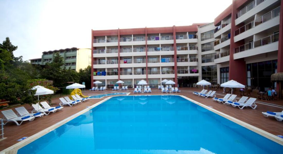 Наше лето началось в этом отеле. Отдыхали с 27 мая по 12 июня. Бронировала сама на сайте. Семья с тремя детьми, летели из Петербурга регулярным рейсом Аэрофлот Спб-Москва-Анталия. Все отлично! Трансфер встретил, в отель доставили за 30 минут. Номер дали как бронировала. Предложили даже поменять на большой, за доплату, но я отказалась. В прошлом году я отдыхала в этом отеле. Знала куда еду. В этом году из за отсутствия российских туристов пусто. Большие отели закрыты. В отеле турецкие семьи с маленькими детьми, престарелые немцы компаниями, от 60 ти до 80 лет. На мое счастье была семья из Белорусии. Они ,,сделали,, мой отдых. По питанию немного скромнее чем в прошлом году, но все так же вкусно: из фруктов арбузы, яблоки зеленые и красные, апельсины, грейпфрут. На ужин всегда разнообразно и вкусно: плов, кура гриль, рыба гриль, тушеная индейка. Овощи как на рынке, много и всякие. Выпечки тоже много и все очень вкусно. Обедали мы всегда в лобби у пляжа. Там выбор даже больше чем в основном ресторане. С 12 ти до 16 ти в лобби горячий суп, пицца, печеный картофель с разными начинками, сладкая выпечка, овощные салаты, спагетти, картофель фри, и фрукты. Голодными не были никогда! Алкоголь в баре до 23.00 потом 2 евро за бокал. Там же до 23.00 горячий турецкий чай. номер убирали каждый день. Полотенца и постель меняли каждый день.в отеле чисто. Анимация очень скромная, да и не для кого ее организовывать... В четверг в отеле турецкая ночь, приезжали молодые танцоры, развлекали как могли. Пару раз перед входом в ресторан на ужин была живая музыка. Молодцы ребята, красиво и настроение на отлично! Море теплое и чистое. В следующем году планирую в этот отель на месяц. Буду ли теперь покупать через Турфирму? Уже нет!! Поняла что самой и дешевле, и проще.