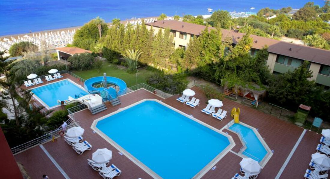 Два бассейна и горки доставили удовольствие не только детям, но и взрослым.Территория вокруг отеля зелёная, ухоженная. Большой чистый песчаный пляж, с множеством лежаков. Море было тёплое, чистое, большое количество рыбы. Очень красивая набережная. В двух километрах город Сиде - прогулка доставляет одно удовольствие.