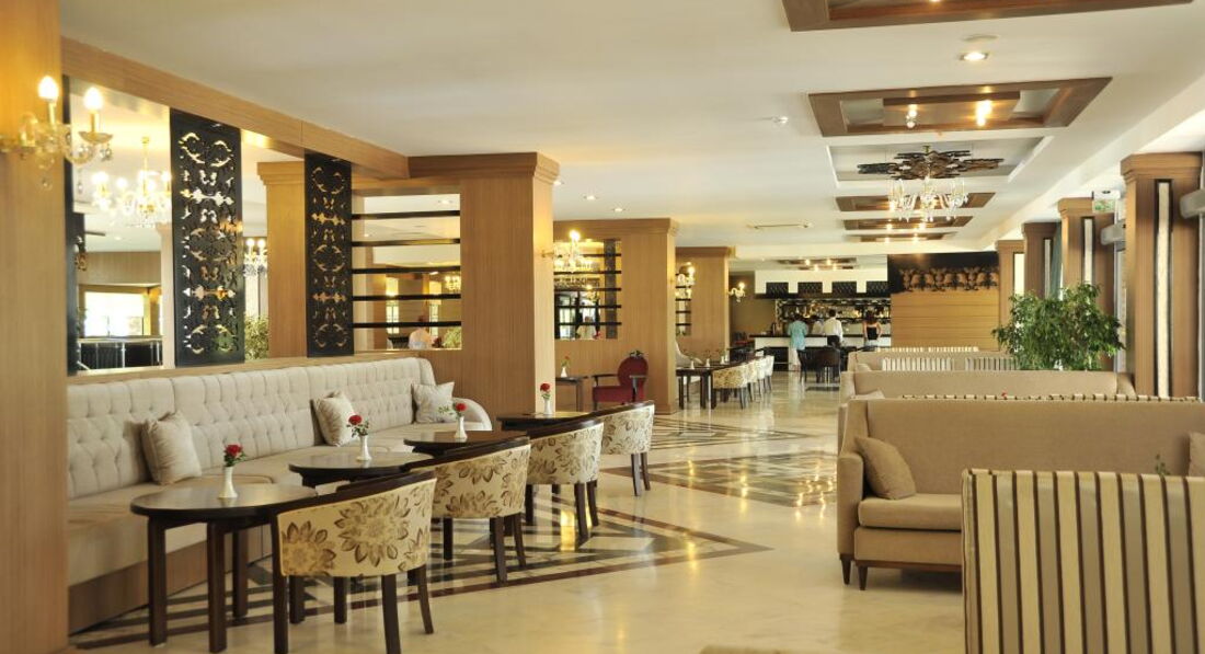 Во- первых спасибо всем за свои довольно объективные отзывы, на 90% все достоинства и недостатки отеля верны.Отель твердая 4.До этого отдыхали в Белеке в 5, так что сравнивать есть с чем. Номера небольшие,мебель не новая, но не разваливается.Заселение после бакшиша прошло очень быстро (бутылка водки +10 $).Питание в отеле выше всяких похвал,вкусно, разнообразно.Напитки не очень,кроме красного вина и пива.Пляж....мы знали что от отеля метров 700 и он небольшой (мягко сказано конечно)поэтому действительность не напугала. Вставать приходилось в 6.30 чтобы занять лежак, (первые 1-3 ряда занимались служками пляжа и толкались немцам по 10 евро),но это не напрягало,могли спокойно поплавать за буйками и идти на завтрак.Контингент в основном на 90%-немцы, но дискриминации нет ни какой, обслуживали и убирались хорошо, обслуга приветливая без закидонов, главное подкидывать официанту по баксу через день и договориться с ним о времени вашего завтрака,обеда ,ужина ( мы общались на немецком)и все будет просто отлично. К нашему приходу уже стояли напитки на свежей скатерти и чистые приборы.Толкотни в ресторане особо не наблюдали если только ее не создавали наши соотечественники пытаясь урвать без очереди что нить.Ну а теперь спасибо Ольге на ресепшене, Хакану (официанту) и всем всем кто посоветовал выбрать этот отель.