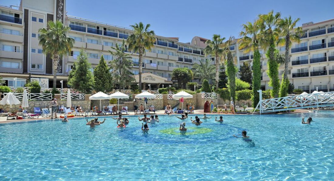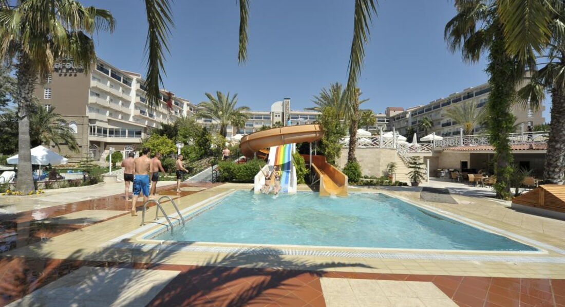 В целом если собираетесь не выходить из отеля и лежать у бассейна, то отель идеален. Но для русской души там тесно, да и где-уж ей развернуться вокруг 80% немецкие пенсионеры. Анимация только на немецком, поэтому детям очень скучно. До моря топать метров 300 по грязненьким турецким улочкам туда под горочку, а обратно на горочку, с коляской очень весело получалось. Сам отель и его территория на твердую хорошую 4, в номерах на полу ламинат, чисто, уютно, питание 5 баллов (есть с чем сравнить в Турции 3 раз) было все от фруктов до мяса. Не рекомендовала-бы этот отель для молодых очень скучно, а для родителей или пенсионеров супер. Просьба к руководству отеля: смените аниматора, он мертвый!!! И хоть на детской анимации пусть периодически говорит на русском.