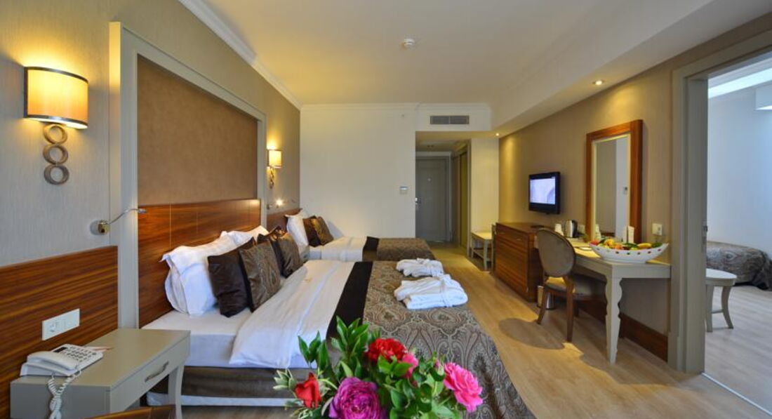 Выбрали этот отель и не пожалели. Все очень понравилось. Море отличное, плавный заход, деткам очень удобно. Теплейшая вода, собирали маленькие ракушки. Но дети больше любили бассейн и горки. Питание отличное. Разнообразное. Удивляюсь, читая отзывы, что плохо кормили)))) Мясо - индейка, курица, баранина, говядина. Очень вкусные тушенные баклажаны, Изобилие сыров. Колбаса и сосиски не очень вкусные. Множество закусок, овощей, зелени, соусов! Десерты разные, фрукты вкуснецкие, особенно клубника и арбузы! а выпечка на завтрак с шоколадной пастой - отдельная тема)))). Разнообразие алкоголя.